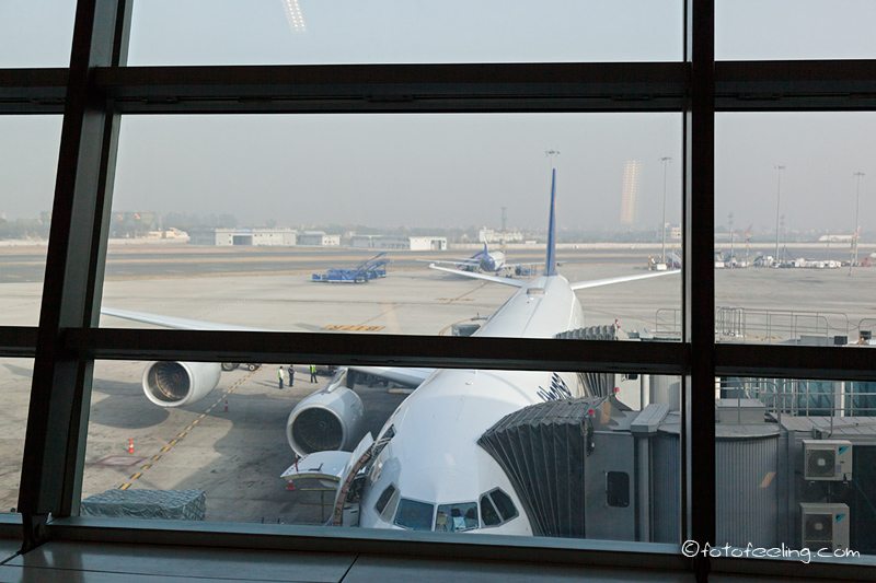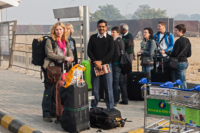 Sanft setzten wir zur Landung auf, doch sehen konnten wir erst einmal gar nichts. Der Flughafen von Delhi lag im Morgendunst, so dass nicht einmal der Tower zu erkennen war. Oh je, wie sollen wir denn da die Sehenswürdigkeiten Delhis erkennen? Ein dicker „To do-Ordner“, den Kerstin und ich ausgearbeitet hatten, lag in unserem Gepäck und wies für jede Stadt die wichtigsten Sehenswürdigkeiten aus.