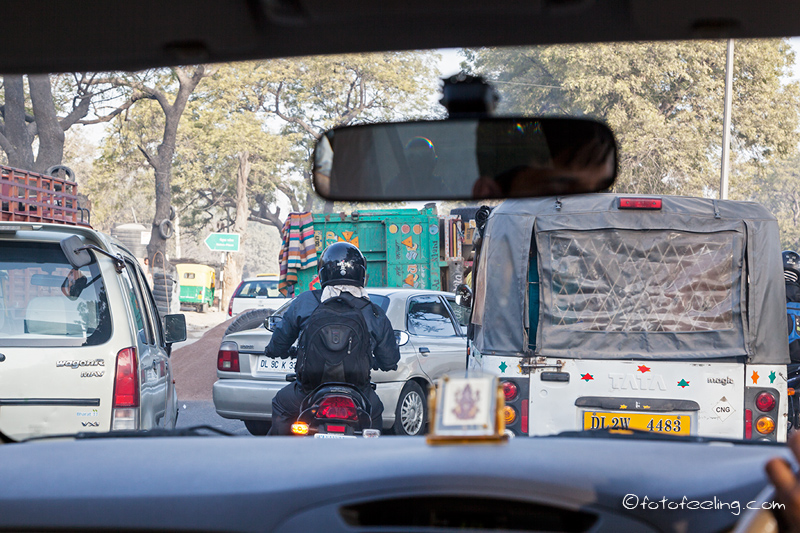 Kurz frisch gemacht und schon stürzten wir uns um 11 Uhr gut gelaunt und voller Tatendrang in Delhis chaotischen Verkehr. Der Dunst hatte sich glücklicherweise etwas aufgelöst.