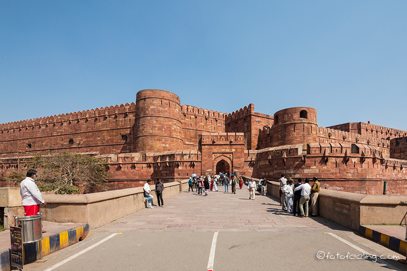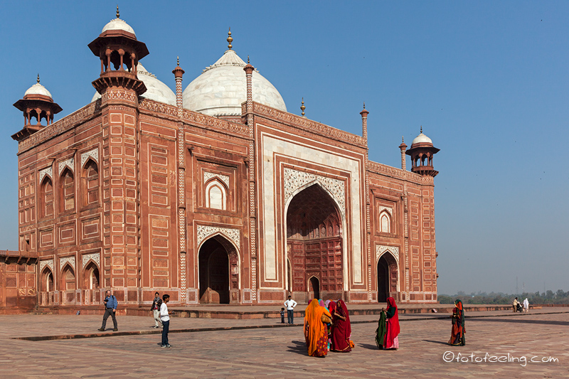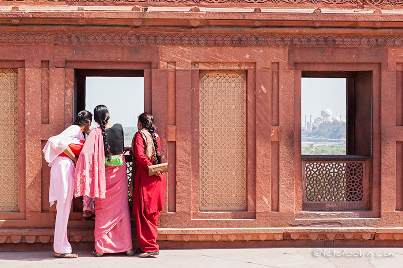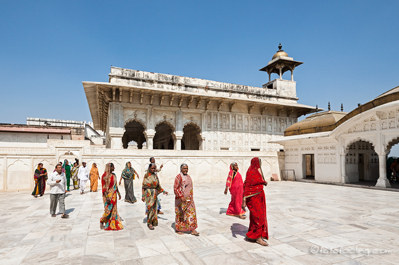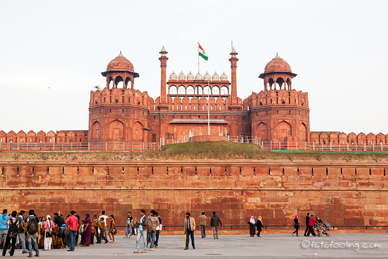 Endlich kamen wir glücklich und heile am Roten Fort an, nur um dann zu erfahren, dass es schon geschlossen hatte. Hätte das nicht der Reiseleiter wissen müssen? Vor dem Fort war noch eine tolle Atmosphäre und das letzte Licht lag auf den roten Sandsteinmauern. Auch hier wurden wir wieder von neugierigen Frauen umringt, die unbedingt ein Bild mit uns wollten.