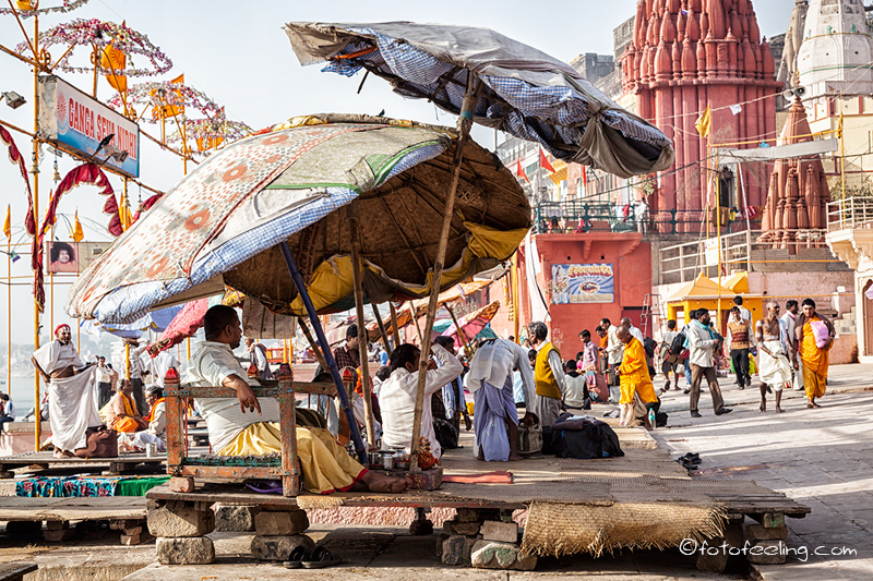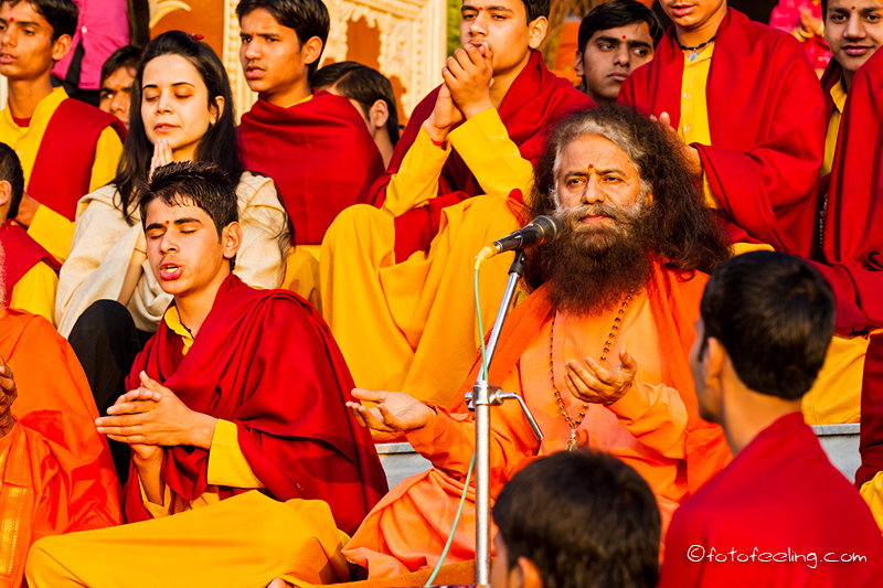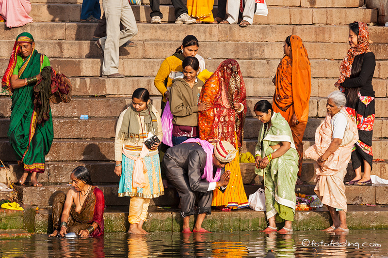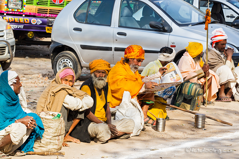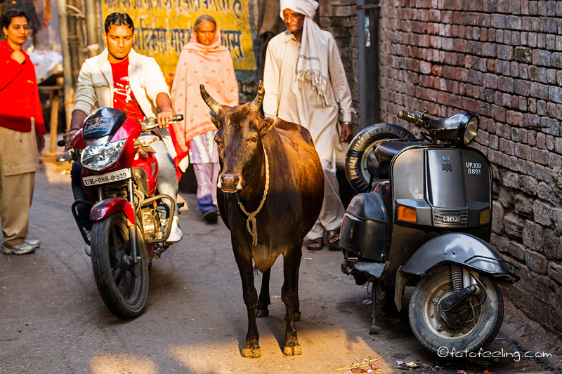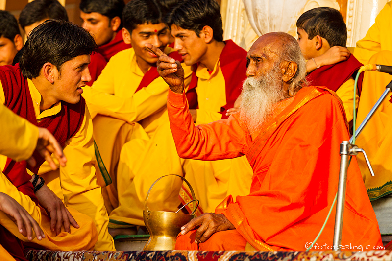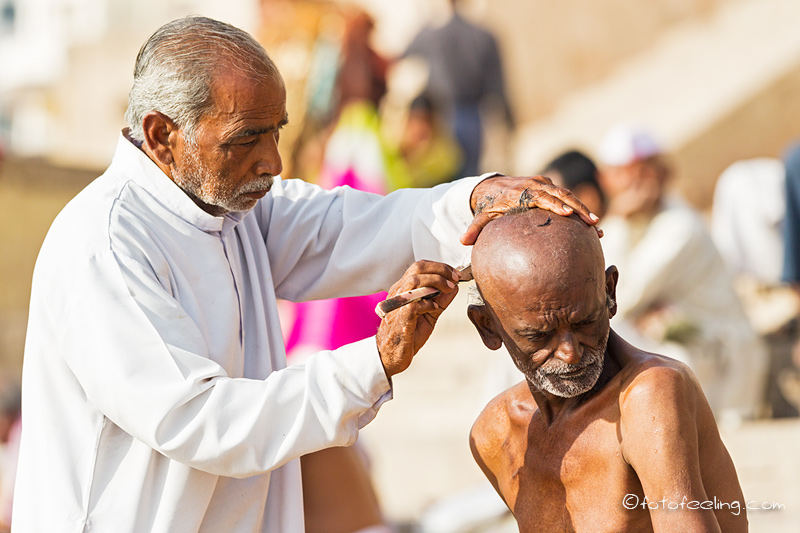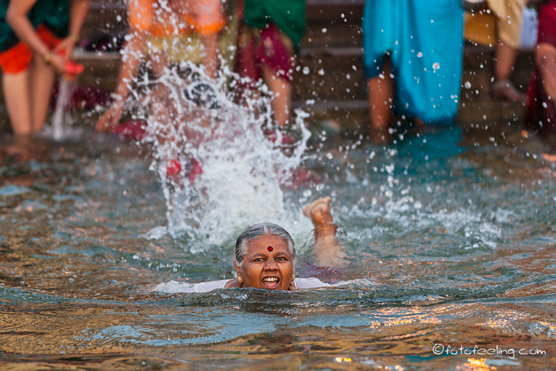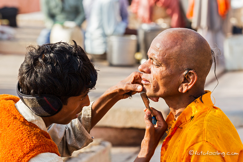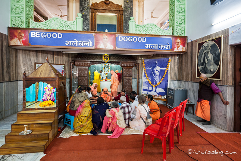 Die ganze Tempelanlage ist mit Marmor ausgelegt, der an diesem Morgen extrem rutschig war, so dass man ganz genau aufpassen musste wohin man ging. Wir umrundeten den Tempel mindestens einmal, fotografierten was die Kameras hergaben und waren einfach nur fasziniert und begeistert. Auch hier waren die Menschen wieder absolut nett und sehr geduldig mit uns Fotografen. Wenn wir sie fragten, ob wir fotografieren dürfen, nickten sie fast immer in typisch indischer Art, indem sie den Kopf leicht und bedächtig schüttelten. Aber mit der Zeit wussten wir was ja oder nein heißt. Danach machten sie einfach normal weiter ohne noch groß auf einen zu achten, dadurch wirkten sie sehr souverän und stolz auf uns und auch die Bilder wirken eigentlich nicht gestellt, sondern eher natürlich. Ich könnte das nicht, denn wenn auf mich eine Kamera gerichtet ist, versteife ich mich und schaue aus, als ob ich auf eine Zitrone gebissen hätte. Umso mehr beneidete ich die Menschen um ihre Natürlichkeit.