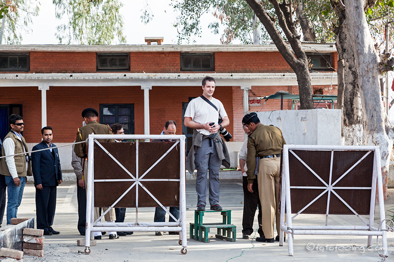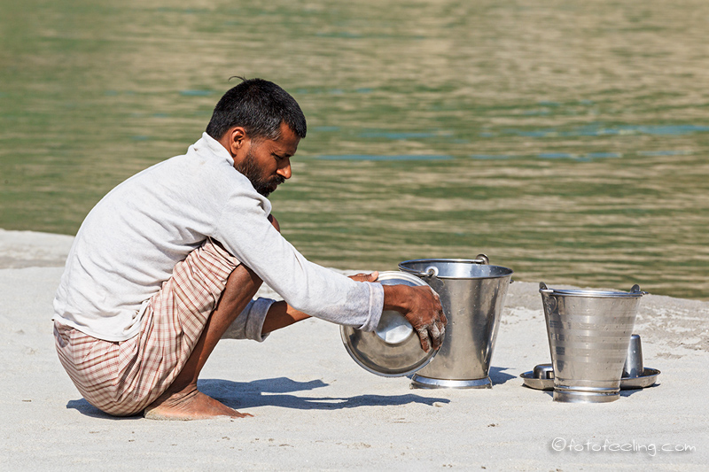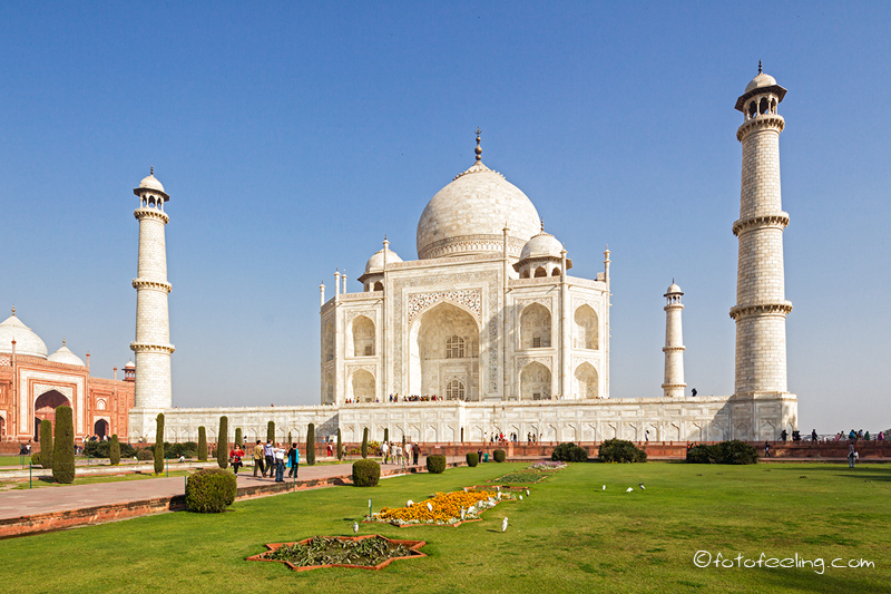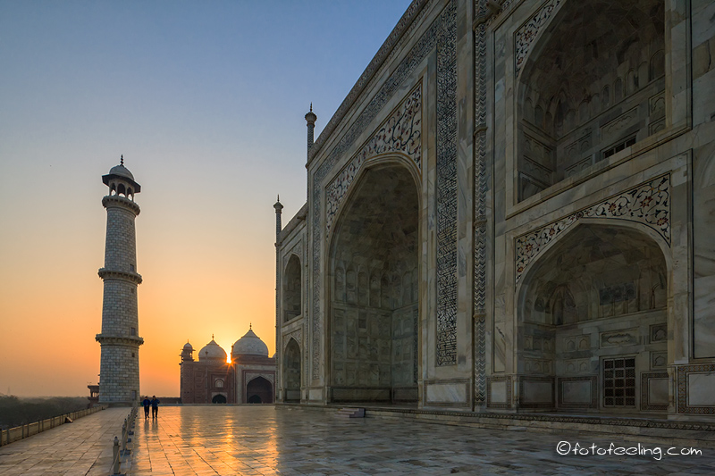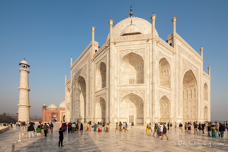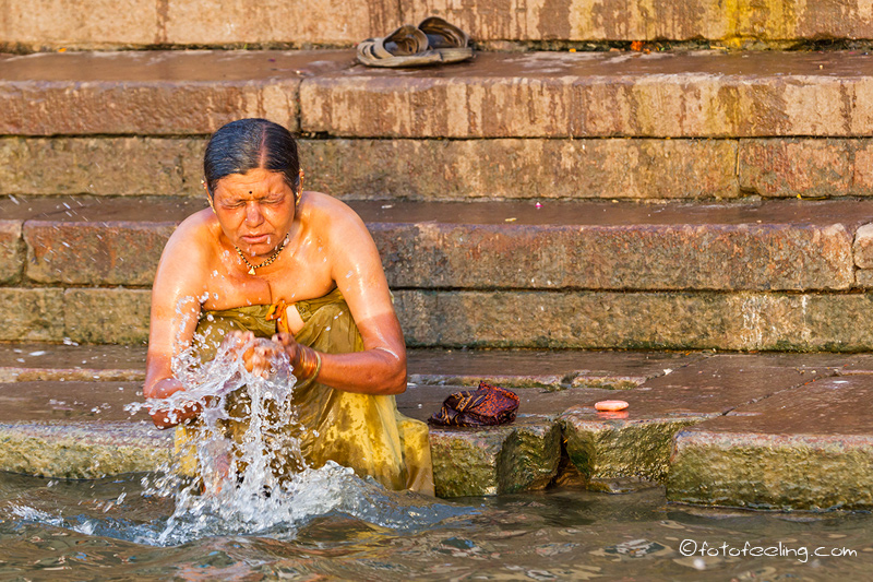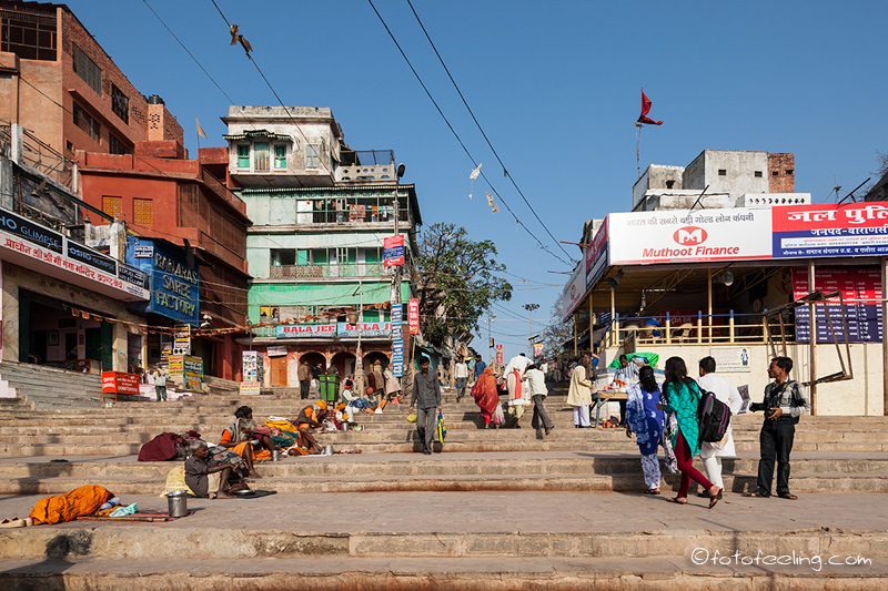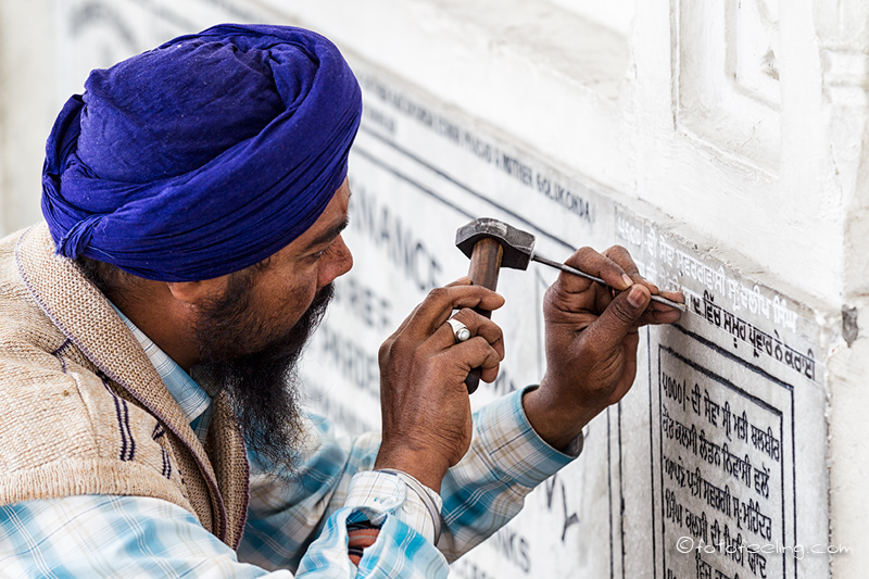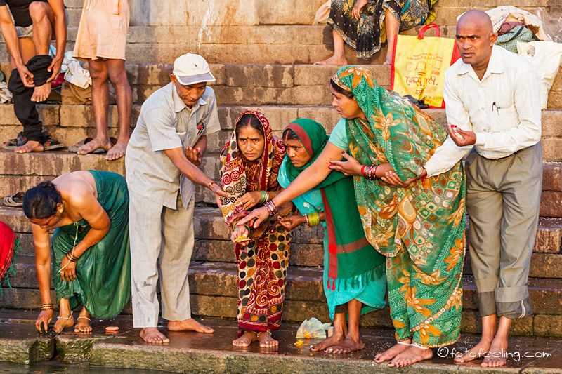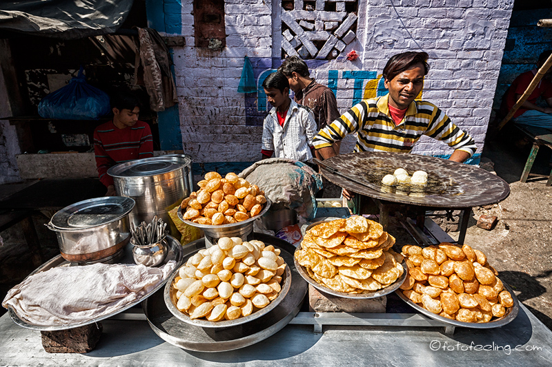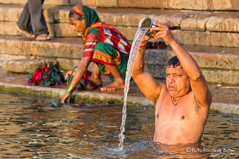 Die ganze Tempelanlage ist mit Marmor ausgelegt, der an diesem Morgen extrem rutschig war, so dass man ganz genau aufpassen musste wohin man ging. Wir umrundeten den Tempel mindestens einmal, fotografierten was die Kameras hergaben und waren einfach nur fasziniert und begeistert. Auch hier waren die Menschen wieder absolut nett und sehr geduldig mit uns Fotografen. Wenn wir sie fragten, ob wir fotografieren dürfen, nickten sie fast immer in typisch indischer Art, indem sie den Kopf leicht und bedächtig schüttelten. Aber mit der Zeit wussten wir was ja oder nein heißt. Danach machten sie einfach normal weiter ohne noch groß auf einen zu achten, dadurch wirkten sie sehr souverän und stolz auf uns und auch die Bilder wirken eigentlich nicht gestellt, sondern eher natürlich. Ich könnte das nicht, denn wenn auf mich eine Kamera gerichtet ist, versteife ich mich und schaue aus, als ob ich auf eine Zitrone gebissen hätte. Umso mehr beneidete ich die Menschen um ihre Natürlichkeit.