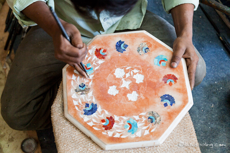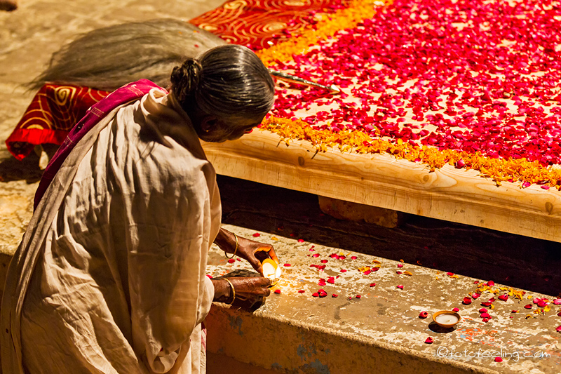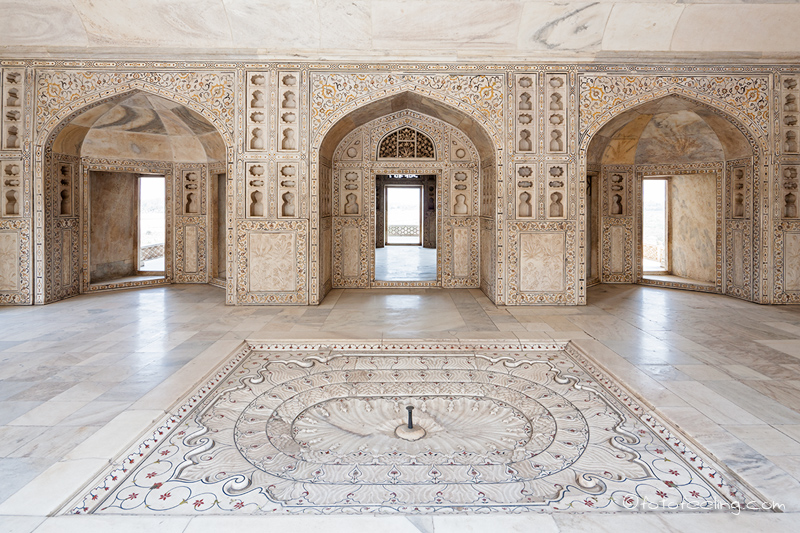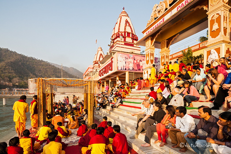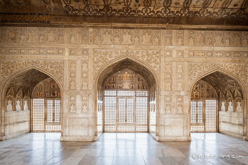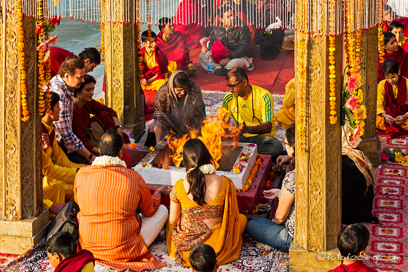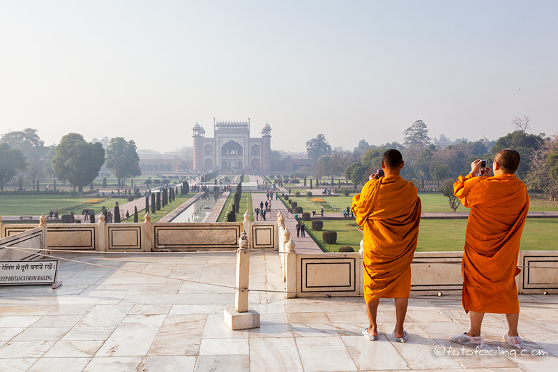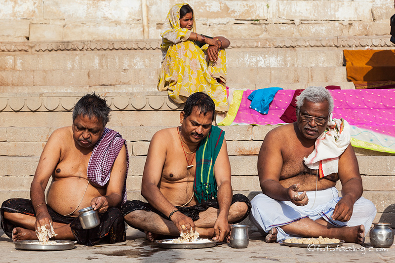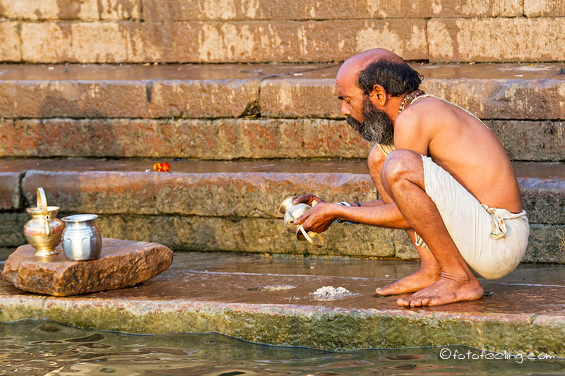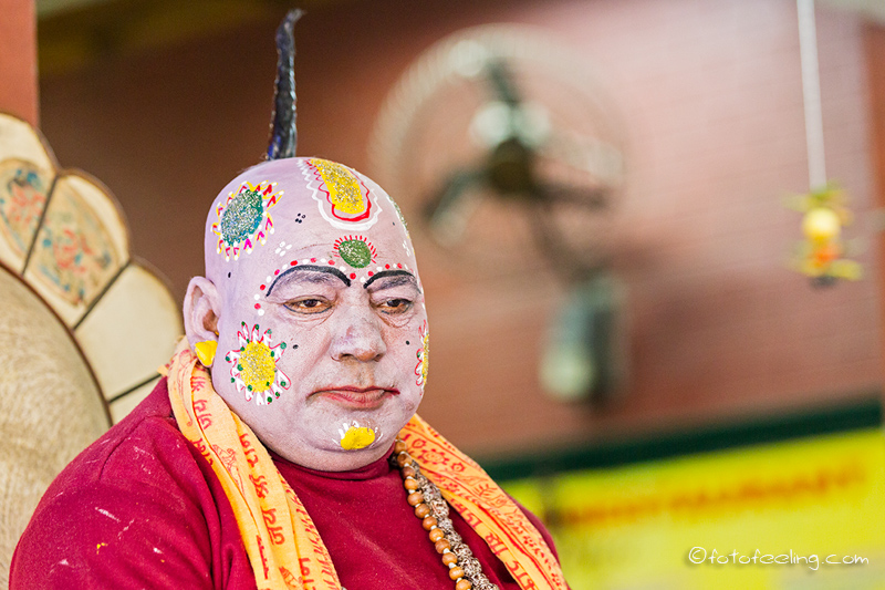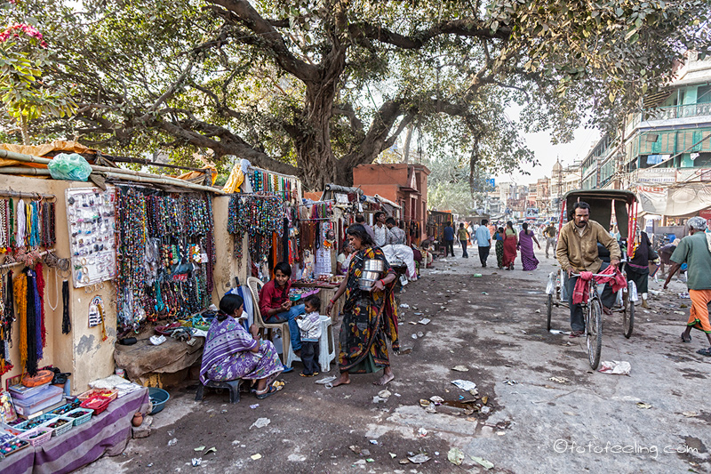 Die ganze Tempelanlage ist mit Marmor ausgelegt, der an diesem Morgen extrem rutschig war, so dass man ganz genau aufpassen musste wohin man ging. Wir umrundeten den Tempel mindestens einmal, fotografierten was die Kameras hergaben und waren einfach nur fasziniert und begeistert. Auch hier waren die Menschen wieder absolut nett und sehr geduldig mit uns Fotografen. Wenn wir sie fragten, ob wir fotografieren dürfen, nickten sie fast immer in typisch indischer Art, indem sie den Kopf leicht und bedächtig schüttelten. Aber mit der Zeit wussten wir was ja oder nein heißt. Danach machten sie einfach normal weiter ohne noch groß auf einen zu achten, dadurch wirkten sie sehr souverän und stolz auf uns und auch die Bilder wirken eigentlich nicht gestellt, sondern eher natürlich. Ich könnte das nicht, denn wenn auf mich eine Kamera gerichtet ist, versteife ich mich und schaue aus, als ob ich auf eine Zitrone gebissen hätte. Umso mehr beneidete ich die Menschen um ihre Natürlichkeit.