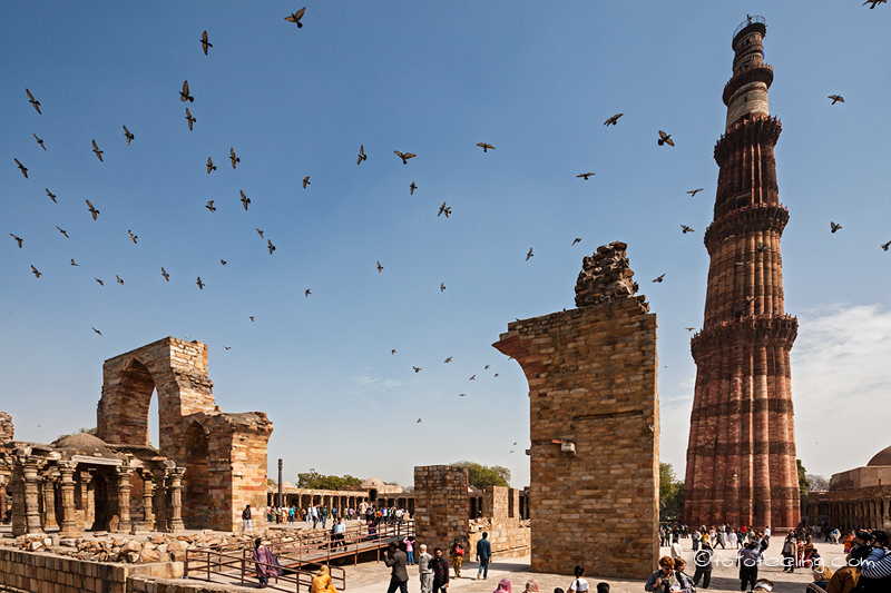 Die Gebäude stammen alle aus der Anfangszeit der moslemischen Herrschaft über Indien und sind Beispiele afghanischer Architektur. Der Qutb Minar selbst ist eine Siegessäule, deren erste drei Stockwerke aus rotem Sandstein errichtet wurden. Der vierte und fünfte Stock sind aus Marmor und Sandstein. Der Bau begann sofort nach Unterwerfung des letzten Hindu-Königreiches von Delhi im Jahr 1193. Der Turm ist 73 m hoch. Er beginnt mit 15 m Durchmesser am unteren Ende und verjüngt sich auf 2.5 m an der Spitze. Heutzutage steht er durch die Last vieler Jahre etwas schief, ist aber nicht weniger eindrucksvoll.