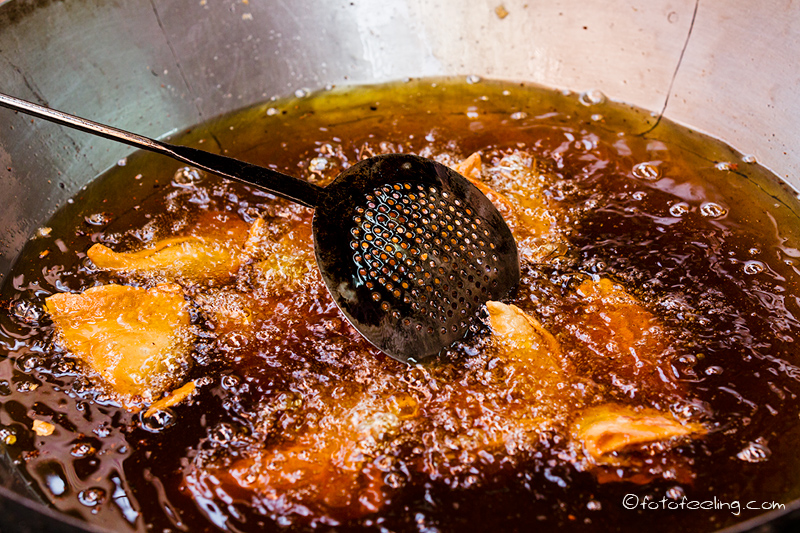 Nach einem kurzen Blick in den Speisesaal schauten wir uns die Tellerrückgabe an. Wahnsinn was da alles an Tellern gespült wurde und das schon am frühen Morgen. Weiter ging es zu riesigen Töpfen, in denen Milch kochte. Eine Etage tiefer schürten Männer das Feuer, auf dem die Töpfe brodelten. Funken flogen, wenn sie Holzscheite nachlegten. Oben standen wiederum andere Männer, die umrührten und aus der Milch Süßigkeiten herstellen.