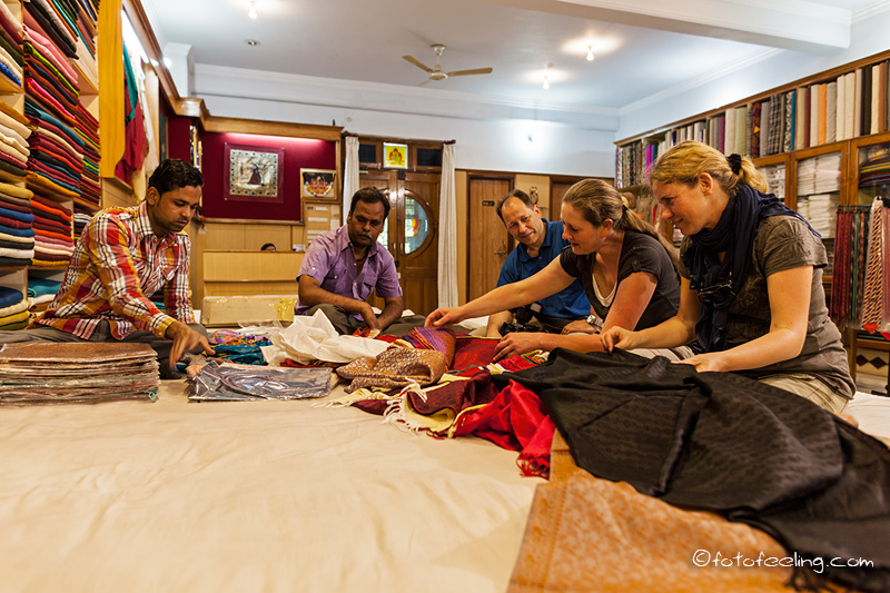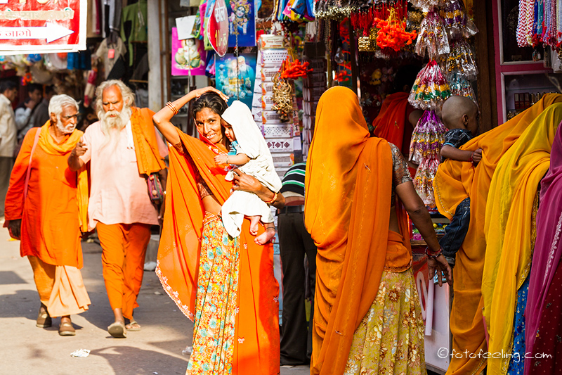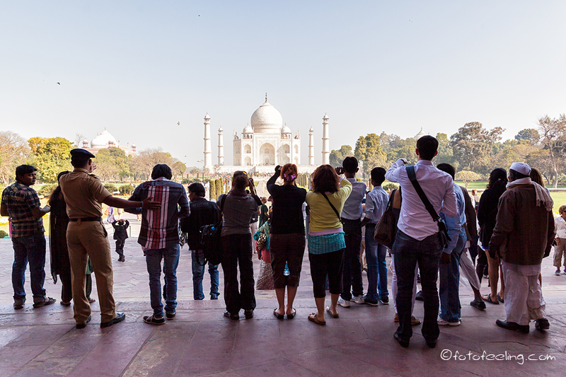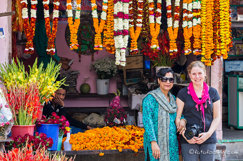 Zurück auf dem freien Platz wurden wir immer wieder angesprochen und zusammen mit der Familie fotografiert. Hier waren wir eindeutig die Attraktion und besonders uns Frauen pickten sich die Inder immer wieder heraus. Besonders junge Leute kamen mit der Kamera auf uns zu. Anfangs dachte ich noch, dass ich sie mit der eigenen Kamera fotografieren soll, das wurde aber stets lächelnd verneint und ich musste mit aufs Bild. Die Inder lassen sich aber meistens auch sehr gerne fotografieren und gerade die Frauen in ihren bunten Saris sind einfach wunderschöne Motive.