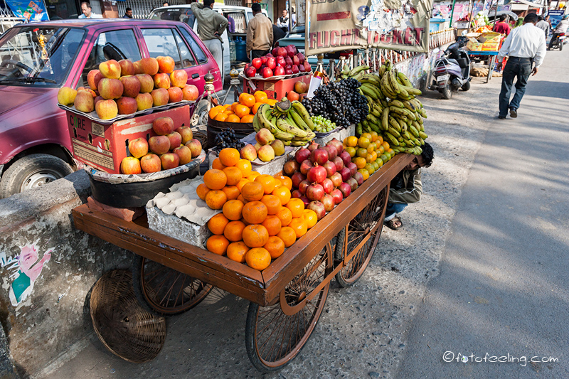 Neben den Lebensmitteln konnte man hier auch Saris und Stoffe kaufen, was Jacorine und Isa auch taten. Der Verkäufer, ein Sikh sah genau das Interesse der Frauen und bekam einen sehr guten Preis für seine Waren und Jacorine wunderschöne 6-8 Meter lange Saris für ein paar Euro. So waren beide Parteien glücklich und wir hatten das Vergnügen, Karan beim Handeln zu beobachten. Es war alles so exotisch und interessant. Wir wussten zum Teil gar nicht wohin wir zuerst schauen sollten. Links waren die Gemüsesorten, rechts die Fisch- und Fleischverkäufer, in der Mitte die Dinge des täglichen Bedarfs und kleine Essstände. Die Verkäufer saßen dabei auf dem Boden und der Käufer hockte sich dazu. Aber auch wir wurden neugierig beäugt, besonders von den Kindern, die erst schüchtern hinter der Mutter hervorschauten und sich nach einem Lächeln langsam näher trauten.