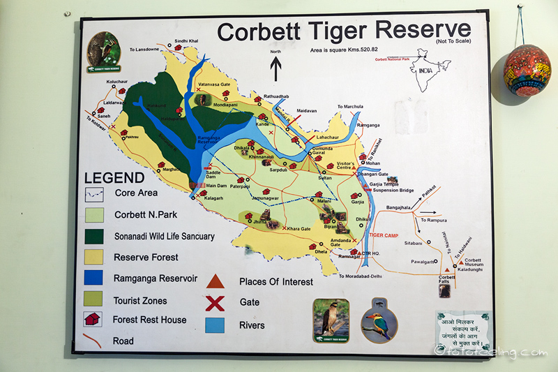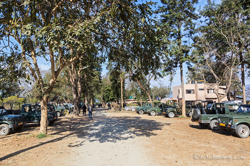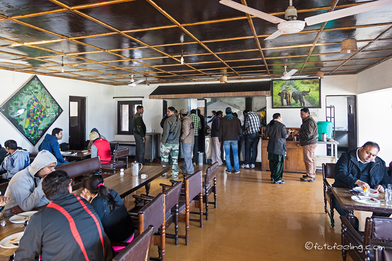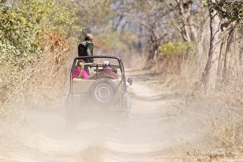 Nach einem schnellen Mittagessen ging es um 14.30 Uhr auf Tour, doch leider war wieder nur ein Fahrzeug reserviert, obwohl unsere Agentur extra zwei Jeeps bestellt hatte. Wie schon im Corbett Nationalpark war da wohl etwas schief gegangen und so musste für uns ein Jeep von außerhalb dazu geholt werden. Unser Fahrer war zwar etwas mufflig, aber er kannte sich gut aus und war sehr schnell. An der Parkverwaltung, wo wir uns mit den Pässen registrieren mussten, bekamen wir außerdem noch einen Führer zugeteilt, der sich für uns als Glücksgriff erwies. Er konnte super Englisch und hatte ein enormes Wissen vom Park und den Tieren. Zum Glück bekamen wir ihn auf Nachfrage für alle Safaris.