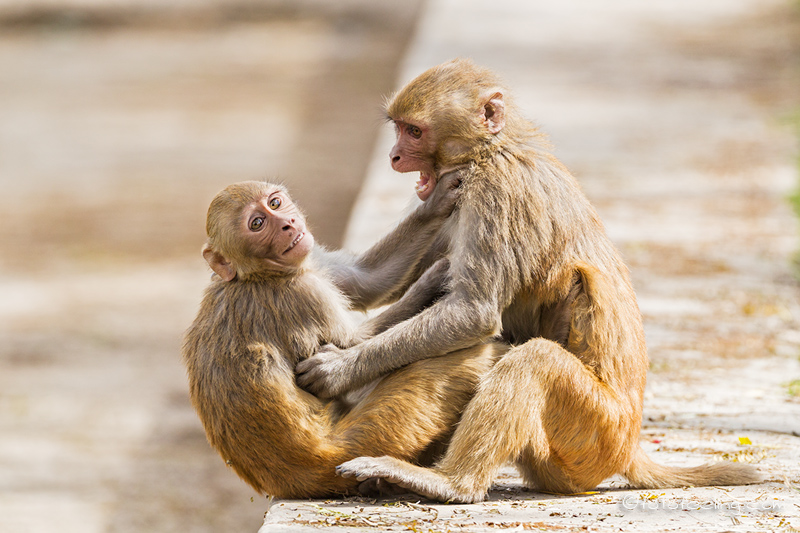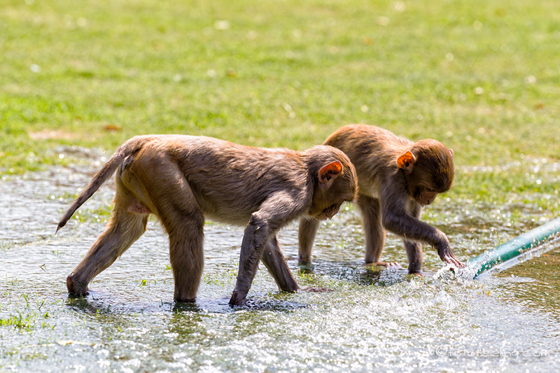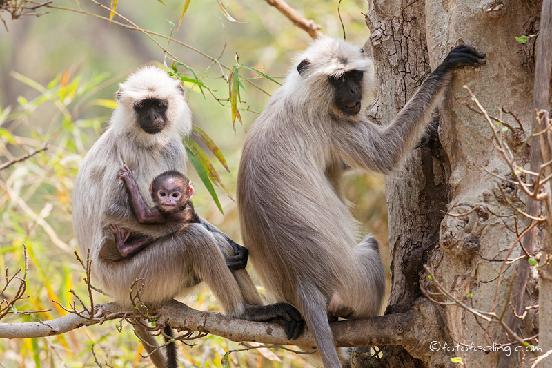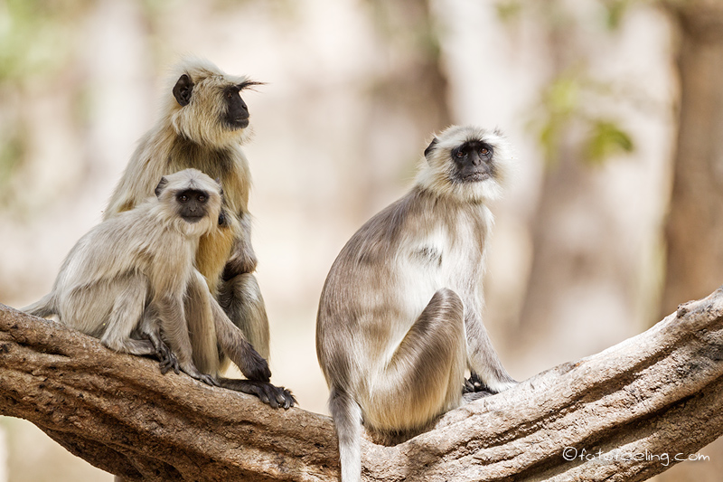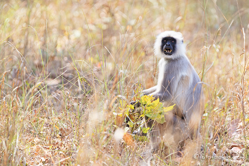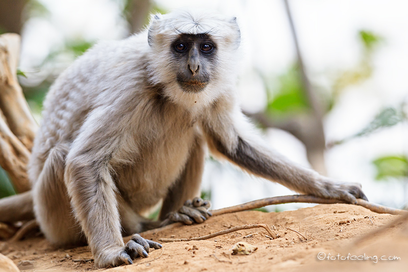 Danach fuhren wir weiter durch die wunderschöne Parklandschaft, sahen Axishirsche, Sambar Hirsche, Barasinghas, Lemuren und einige Vögel. An einer Stelle beobachteten wir eine Lemuren-Familie. Die Affen saßen friedlich miteinander am Boden und fraßen, doch immer wieder wurde die Idylle durch ein anderes Männchen gestört, das den Chef herausforderte und dazu permanent eigenwillige Laute ausstieß dabei die Zähne fletschte und auf die Affen losging. Dabei handelte es sich um Drohgebärden und mehr oder weniger Scheinangriffe, doch es reichte aus, um die Affenfamilie in helle Aufregung zu versetzen. Immer wieder wechselten sie die Straßenseite, doch der Angreifer gab keine Ruhe. Als es dem Chef zu viel wurde, setzte er zum Gegenangriff an und der Herausforderer nahm Reißaus. Doch sobald der Chef ihm den Rücken zudrehte, näherte sich der Herausforderer wieder und das Spiel begann von Neuem. Da hätten wir noch ewig zuschauen können, doch um 11 Uhr mussten wir den Park wieder verlassen und brausten zurück zur Lodge.