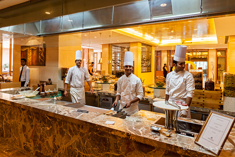 Um 6.30 Uhr klingelte gnadenlos unser Wecker, aber wir hatten ja auch an diesem Tag wieder viel vor. Doch zuerst wartete das Frühstück auf uns. Müsli und Joghurt, frische Papaya und Bananen, Eier in jeder erdenklichen Variante, Toast und jede Menge indischer Köstlichkeiten standen zum Verzehr bereit und so ließen wir es uns gut gehen. Einzig der Kaffee war für mich absolut ungenießbar, denn Instantkaffee ist einfach nicht mein Ding und so wechselte ich nach ein paar Versuchen diese Brühe zu trinken schon bald auf schwarzen Tee um.