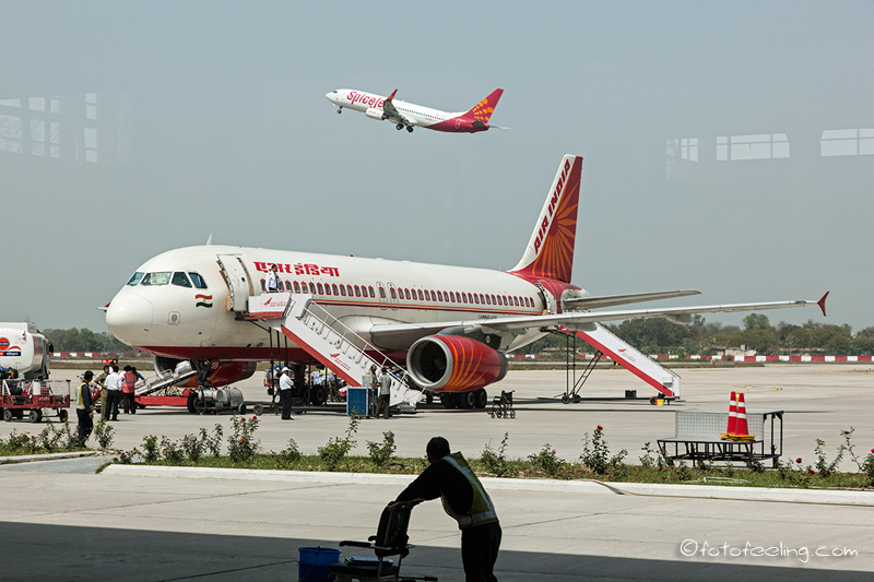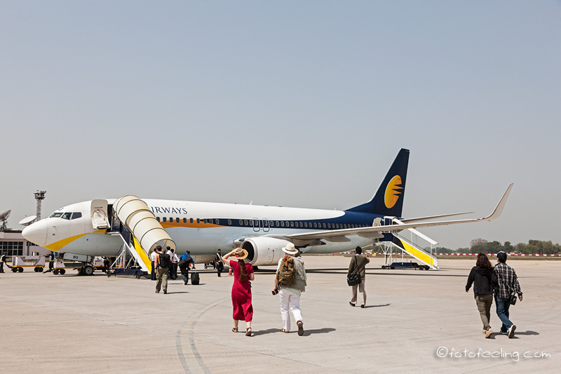 Wieder einmal wurde unser Ticket streng kontrolliert, dann durften wir in die Abfertigungshalle. An diesem Morgen flogen wir mit Air India. Unser Gepäck passte vom Gewicht perfekt, aber diesmal interessierte es niemanden. Wieder bekamen wir für jedes Gepäckstück einen Anhänger, der abgestempelt werden musste, um mit an Bord zu dürfen. Wieder wurden wir genau kontrolliert, dann ging es los nach Delhi und die Industriestadt Nagpur verschwand langsam unter uns im Smog.