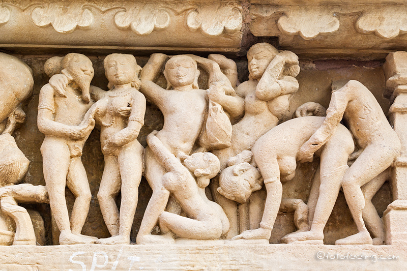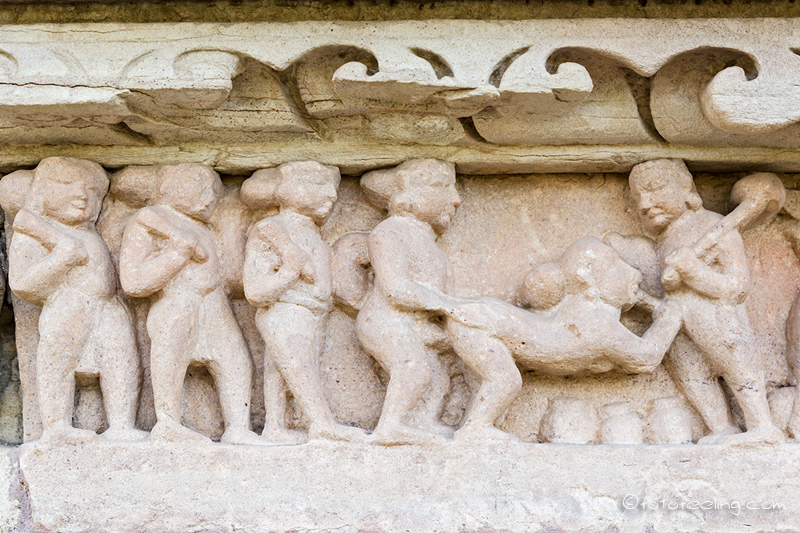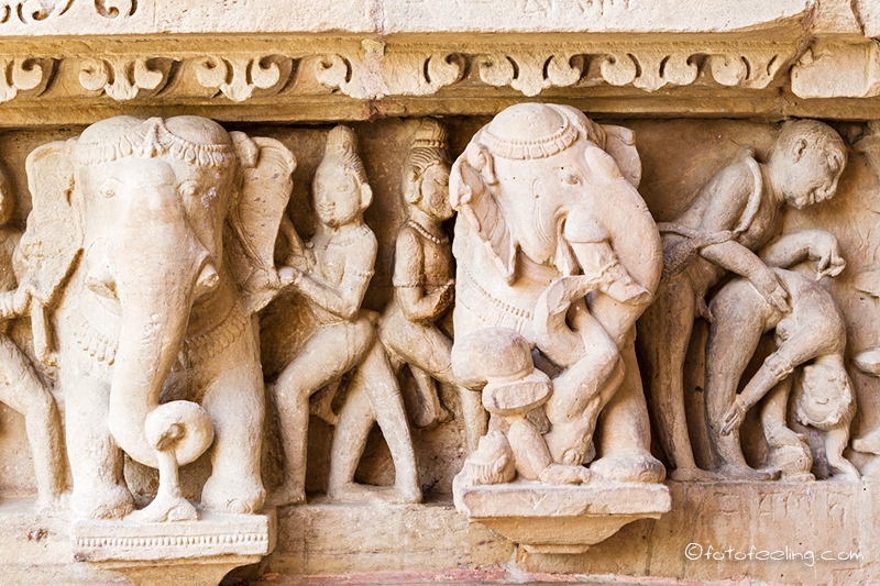 Besonders interessant fanden wir einen Elefantenfries mit erotischer Szene am Lakshmana-Tempel. Alle Elefanten schauen nämlich immer diskret geradeaus, nur einer nicht. Er beobachtet ganz ungeniert ein Liebespaar und hatte dabei seinen Mahut zu Boden geworfen. Diese Szene wurde zwar bei Instandhaltungsarbeiten kopiert, aber der Fries, der uns gezeigt wurde, ist der einzige wirklich überlieferte auf dem Gelände.