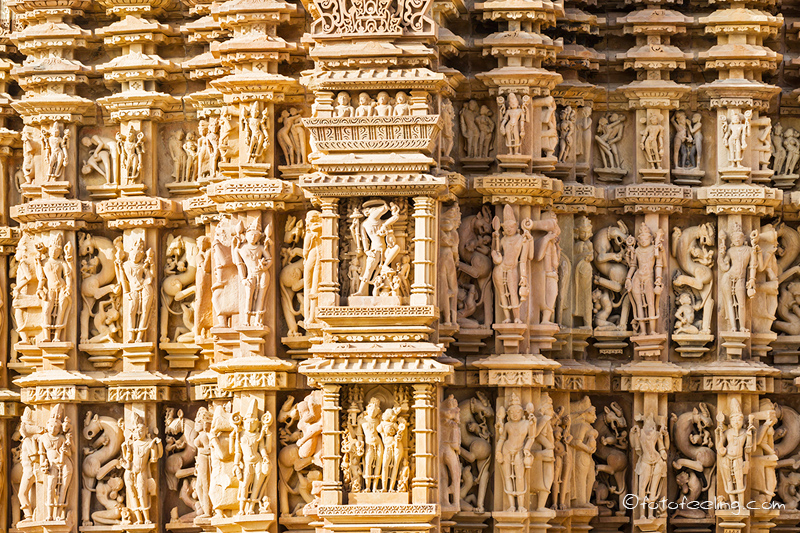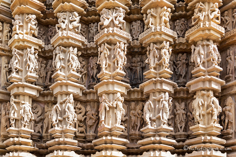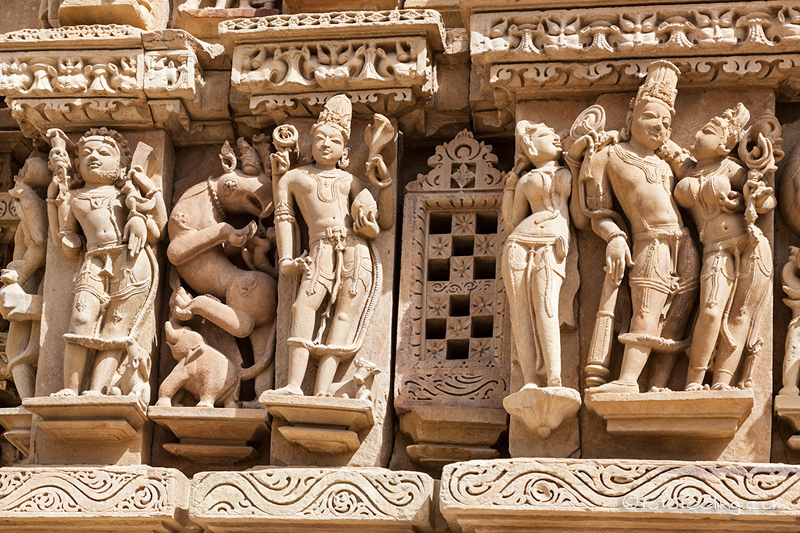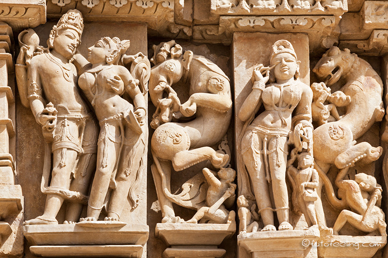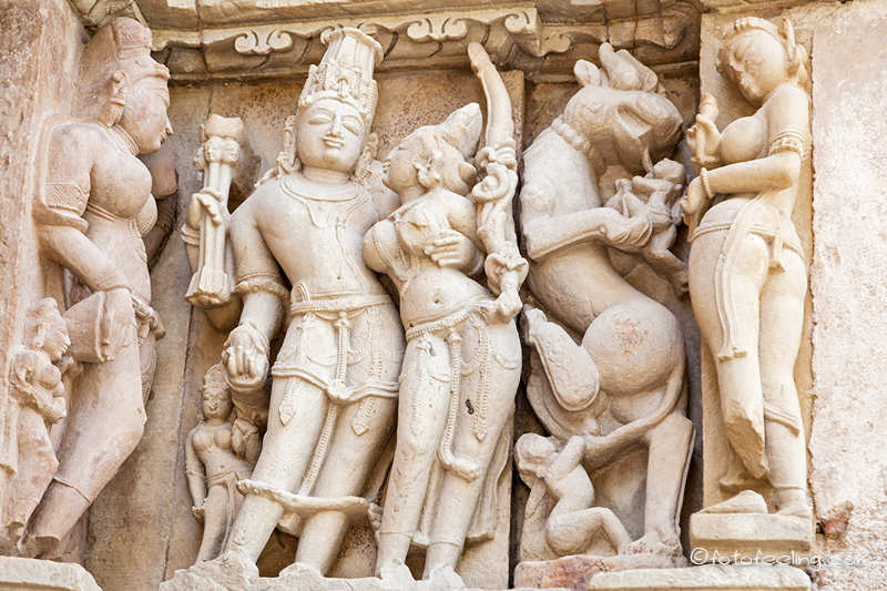 Meist sind Götterfiguren wie Shiva und Vishnu dargestellt, die von wunderschönen wohlproportionierten Mädchen flankiert werden. Auch hier sind wieder erotische Darstellungen zu finden. Aber man muss oftmals schon genau schauen, um sie zu entdecken.