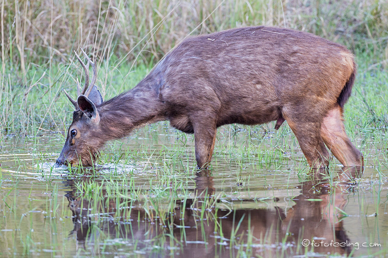 Am Morgen unternahmen wir eine letzte Safari, doch leider hatten wir auch diesmal Pech, während alle anderen einen Tiger sahen, waren wir wieder einmal zur falschen Zeit am richtigen Ort und zur richtigen Zeit woanders. Viray und der Guide waren fast untröstlich und so schluckten wir die eigene Enttäuschung herunter und trösteten unseren Fahrer. Wir versprachen wiederzukommen und den Tigern noch eine Chance zu geben. Zu einer erfolgreichen Tigersafari gehört viel Wissen aber auch eine Menge Glück und das hatten wir nicht an diesem Tag. Dort, wo der Tiger zuletzt gesichtet wurde, verbrachten wir den restlichen Vormittag. Auch wenn uns das Tigerglück nicht hold war, haben wir den Kanha Nationalpark fest in unser Herz geschlossen mit seiner schönen Landschaft aus Sal- und Mischwäldern, weiten Grasflächen, den Seen und Flüssen und seinen Bewohnern.