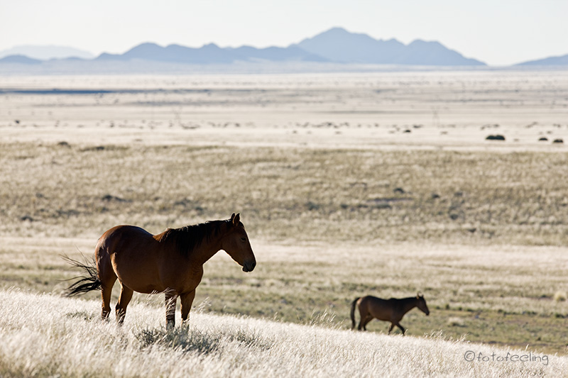 Im Namib Gebiet leben ca. 100 Wildpferde. Vor einigen Jahren gab es sehr viel mehr Tiere. Wegen großer Wasserknappheit ließ die Regierung alle bis auf ca. 100 Pferde einfangen und verkaufen. So wird die Zahl der Tiere auf ca. 100 bemessen.