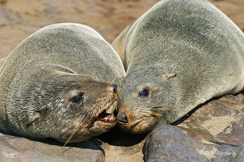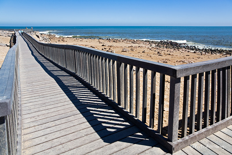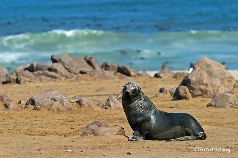 vorkommen. Sie hält sich an der Küste zwischen Südangola und Algoabucht auf. Obwohl ihre Zahl schwankt, leben dort ca. 80000 - 100000 Tiere. Anfahrt:Man gelangt nach Cape Cross von Swakopmund aus über die C34, die weiter bis zum Skeleton Coast Park führt. Die Straße ist eine richtige Salzstraße mit einer festen und gut zu befahrenen Oberfläche, die am Meer entlang führt. Die Straße zweigt nach ca. 110 Kilometern nach links ab und man folgt dem gut beschilderten Weg bis zu einem Rangerhäuschen, das rechts der Straße liegt.Unser Tipp:Wir besuchten Cape Cross bisher immer auf der Durchreise, d. h. wir verbringen meist die Nacht davor in Swakopmund und starten rechtzeitig am Morgen, damit wir gegen 10 Uhr in Cape Cross sind. Am Eingang zum Park muss man ein Permit erwerben. Hier findet man auch Toiletten.Danach fährt man noch ein kurzes Stück weiter bis auf den Parkplatz. Von dort aus kann man schon das Meer sehen und die Robben hören bzw. riechen. Man sollte einen guten Magen haben, denn wenn man aus dem Auto steigt und der Wind ungünstig steht, schlägt einem der Geruch der Robbenkolonie brachial entgegen. Wir sind bei unserem 1. Besuch sofort wieder ins Auto gestiegen und haben dort nochmals tief durchgeatmet. Es ist aber ein beeindruckendes Schauspiel, das einen den Gestank leichter ertragen lässt. Während unserer anderen Besuche in Cape Cross stand der Wind günstiger und es war nicht mehr so schlimm. Im April 2008 fanden wir in Cape Cross ein neu gebautes Stegsystem vor. Von dort aus kann man gut die Robben beobachten, ohne ihnen zu nah zu kommen. Da am Meer immer ein kühler Wind weht, sollte man an Sonnenschutz denken und vielleicht eine dünne Jacke dabei haben. Bei Cape Cross gibt es auch einen Picnic Platz, der auf halben Weg zwische Gate und Robbe liegt. Übernachtung: In unmittelbarer Nähe zu Cape Cross liegt die Cape Cross Lodge, entlang des Atlantiks gibt es auch einige Campingplatze. Ein Empfehlung können wir hier nicht aussprechen, da wir nach dem Besuch der Robben weiterfuhren. Öffnungszeiten: 10 - 17 Uhr Leider gibt es auch eine unschöne Seite von Cape Cross. Da die vielen Robben für den Fischfang ein Problem sind, werden sie immer wieder abgeschlachtet. (Culling) weitere Bilder von Cape Cross