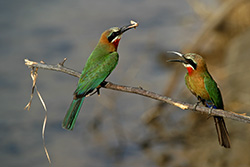 Der Caprivi Streifen oder "Caprivi Strip" ist ein schmaler Landstreifen im äussersten Nordosten Namibias, rund 400 Kilometer lang. Deutschland erwarb das Gebiet 1890 - zusammen mit Helgoland - von den Briten, im Tausch gegen Sansibar. Benannt wurde es nach dem damaligen deutschen Reichskanzler Graf von Caprivi, der den Vertrag mit den Engländern unterzeichnete. Die einstmals schwierige und während der Regenzeit oft kaum befahrbare Wellblechpiste durch den Caprivi wurde 2001 durch den geteerten Caprivi Highway (B8) ersetzt, so dass man auch die Victoria Fälle in Zimbabwe sowie den Chobe Nationalpark in Botswana, beides beliebte Reiseziele im Norden, heute problemlos erreichen kann. Der Caprivi fällt in die tropische Klimazone und verzeichnet während der Regenzeit (Dezember bis März) hohe Niederschläge. Bei zugleich hohen Temperaturen herrscht dann oft eine schwülheisse Witterung. Malaria Prophylaxe wird für den Caprivi empfohlen. Der Caprivi ist die wasserreichste Region in Namibia. Grund dafür sind nicht nur die Niederschläge, sondern eine Reihe von mächtigen Flüssen, Okavango, Kwando und Zambesi, die alle in Angola entspringen und eine riesige Region bewässern. Es gibt zudem noch weitere, kleinere Flüsse wie den Linyanti und den Chobe. Der Wasserreichtum im Caprivi sorgt für einen grossen Wildbestand. Besonders zahlreich sind die Elefanten, wenngleich man sie in der dichten Vegetation nicht immer zu Gesicht bekommt. In mehreren Reservaten (Bwabwata, Mudumu, Lizauli, Mamili) wird das Wild geschützt. Es gibt jedoch keine Grenzzäune, so dass die Tiere relativ ungehindert in die Nachbarländer Botswana und Zambia ziehen können. Für Tierbeobachtung exzellent ist der im Süden angrenzende Chobe Nationalpark in Botswana. Versorgungszentrum im Caprivi ist die kleine Stadt Katima Mulilo an der Ostspitze. Der Ort liegt direkt am Zambesi River und bietet reizvolle Lodges direkt am Fluss. Ferner gibt es einen Flugplatz, ein Hospital, mehrere Tankstellen, Lebensmittelläden sowie einen großen Straßenmarkt mit kunsthandwerklichen Artikeln, traditionellen Korbflechtereien, Holzschnitzerartikeln, Schmuck und Kleidung. In Katima Mulilo gibt es einen Grenzübergang nach Zambia, das touristisch in den letzten Jahren immer attraktiver wird. Wer nach Botswana oder Zimbabwe will, fährt auf der B8 weiter nach Ngoma Bridge. 1999 brachen im Caprivi Unruhen aus, und der Tourismus kam binnen kurzer Zeit fast völlig zum Erliegen. Seit Mitte 2002 ist die Situation wieder unbedenklich. Besondere Sicherheitsrisiken im Caprivi gibt es nicht mehr. Popa Falls:Die Popa Wasserfälle liegen 210 Kilometer östlich von Rundu am Okavango Fluss. Es handelt sich dabei weniger um Wasserfälle als um Stromschnellen. Der Okavango durchbricht hier ein 4 Meter hohes Felsenriff in seinem Flussbett. Umgeben sind die Fälle von paradiesisch schöner Natur. Mudumu Park: Der Mudumu Park wurde erst 1990 als Naturschutzgebiet ausgewiesen. Der Park ist ca. 85.000 Hektar groß und erstreckt sich vom Ufer des Kwando nach Osten, hinein in eine dichte Mopane-Baumsavanne. Im Park gibt es mehrere Campsites. Mahango Park: Der Mahango Park gehört zu den jüngsten und mit 30.000 Hektar zu den kleinsten Naturschutzgebieten Namibias. Der Park wird im Süden vom Okavango, der auch die Grenze zu Botswana bildet, begrenzt. Geschaffen wurde der Park zum Schutz von Tierarten, deren Zahl im Caprivi alarmierend gesunken ist, wie Pferde- und Rappenantilopen, Moorantilopen und Sitatunga (Sumpfantilopen). In der Trockenzeit kann man hier auch große Elefantenherden beobachten. Ansonsten kann man noch Flußpferde, Büffel, Löwen, Leoparden, Hyänen und Wildhunde mit etwas Glück sehen. Kalizo Lodge: Die Kalizo Lodge liegt direkt am Zambesi (Sambezi)River ca. 40 km flußabwärts von Katima Mulilo. Telefon: +264-(0)66-25 28 02 Horse Shoe im Bwabwata National Park: Der Horseshoe ist eine Flußbiegung des Kwandorivers, der einem Hufeisen ähnelt. Der Horseshoe ist ein sehr tierreiches Gebiet, da es dort Wasser und Nahrung in Hülle und Fülle gibt. Vor allem kann man dort Elefantenherden und Flusspferde beobachten. Die Strecken am Horseshoe sind zum Teil sehr tiefsandig, was ich selber am eigenen Leib erfahren musste. Ganz in der Nähe einer Elefantenherde ging dann nichts mehr. Da half nur noch Schaufeln und ein zweites Auto zum Rausziehen. Die genaue Geschichte dazu gibt es ausführlich im Reisebericht Namibia-Botwswana-Zimbabwe 2003. weitere Bilder: |
