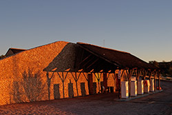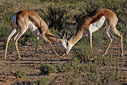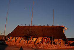 Der Kgalagadi Park hieß früher Kalahari Gemsbok Park und wurde 1931 zum Nationalpark erklärt, um dem zerstörerischen Treiben der Wilderer Einhalt zu gebieten. Er liegt relativ fernab der Touristenrouten und ist nur über relativ staubige Pisten zu erreichen. Der Kalahari Park wurde 1999 mit dem angrenzenden Gemsbok National Park in Botswana zusammengelegt und Kgalagadi Transfrontier Park genannt. Das riesige Wildreservat, das eine Fläche von rund 36.000 qkm einnimmt, gibt Einblick in die faszinierende Landschaft der Kalahari mit ihren orangeroten Dünenketten und der speziell an diese Trockensavanne angepassten Tierwelt. Die Grenze zwischen Südafrika und Botswana wird nur durch einige weiß getünchte Steine markiert. So kann das Wild auf der Suche nach Nahrung ungehindert durch beide Teile des Parks streifen. Die Zufahrt zum Park in Südafrika erfolgt über das Restcamp Twee Rivieren im Süden Südafrikas. Hier gibt es sehr gute Unterkünfte mit Swimming Pool, Restaurant und einen relativ großen Campingplatz. Die beiden Hauptrouten durch den Nationalpark beginnen hier und führen entlang der, normalerweise ausgetrockneten, Flussbetten des Nossob und des Auob Riviers. Im Abstand von etwa 5 bis 20 Kilometern findet man Wasserlöcher in den Flussläufen, meist durch Windpumpen betrieben. Hier hat man sehr gute Wildbeobachtungsmöglichkeiten besonders zu den Morgen- und Nachmittagsstunden. Für einen Besuch des Kgalagadi Transfrontier Parks sind die kühleren Wintermonate von April bis September besser geeignet als die sehr heißen Sommermonate, wenn die Temperaturen die 40° Grad Marke überschreiten können. Am günstigsten für Tierbeobachtungen ist es nach der "Regenzeit", die normalerweise im März oder April zu Ende geht. Die Straßen im Park sind ungeteert und teilweise recht sandig. Dennoch ist für den südafrikanischen Teil des Parks im Allgemeinen kein Geländewagen nötig. Lediglich während der Regenzeit, wenn die ansonsten trockenen Flüsse plötzlich Wasser führen, können die Wege unpassierbar werden. Nicht selten müssen dann Teile des Parks für den Autoverkehr geschlossen werden. Anfahrt: Der Kgalagadi Transfrontier Park liegt 904 Kilometer von Johannesburg entfernt und 260 Kilometer von Upington. Fährt man über Upington, so sind die letzten 60 Kilometer ungeteert. Wer von Johannesburg kommt, kann auch über Kuruman, Hotazel und Vanzylsrus fahren. Die letzten 300 Kilometer sind dann Schotter- bzw. Sandstrasse. Man fährt zunächst immer das Camp Twee Rivieren im Süden des Parks an, wo der Parkeingang ist. Für die Fahrt zu den anderen beiden Camps im Norden des Parks - Mata Mata und Nossob - muss man einen halben Tag einplanen, da man sich im Park an die vorgeschriebene Höchst- Geschwindigkeit (50 km/h) halten sollte. In den Botswana Teil des Parks gelangt man über den Gemsbok/Bokspits Grenzübergang, 60 km südlich von Twee Rivieren. Der Parkeingang befindet sich in Two Rivers. Ein separates Permit ist erforderlich. Buchungsadresse weiter unten. Für den Botswana Teil wird ein Geländewagen benötigt. Restcamps: Sehr komfortabel sind die Chalets in Twee Rivieren, die man entweder mit einem oder zwei Schlafzimmern bekommt. Voll ausgestattete Küche, Badezimmer, Klima-Anlage (wird nachts abgeschaltet). In Mata Mata als auch in Nossob gibt es Bungalows mit 6 Betten, Küche und Bad. Außerdem einfache 3-Bett Hütten ohne Küche und Bad. Keine Klima-Anlagen. Darüber hinaus stehen in allen drei Restcamps schöne, zum Teil auch schattige Campingplätze zur Verfügung. Im Botswana Teil des Kgalagadi Transfrontier Parks gibt es nur Campingplätze mit sehr schlichter Ausstattung. Die Plätze heißen Rooiputs, Two Rivers und Polentswa. Jeder Platz ist nur für 6 Fahrzeuge zugelassen. Vorausbuchungen von Unterkünften sind dringend zu empfehlen, vor allem zu Ferienzeiten. Unterkünfte sind oft lange im Voraus ausgebucht. Bushcamps: Weiterhin gibt es in Südafrika noch einige kleine Bushcamps mit Übernachtungsmöglichkeit in einfachen Unterkünften. Diese Camps sind nur mit 4x4 Fahrzeugen erreichbar. Alle Camps haben nur Solarstrom für die Beleuchtung sowie wenn nicht anders angegeben auch für Trinkwasserbrunnen. Gas zum Kochen, für Warmwasser und die vorhandenen Kühlschränke steht überall zur Verfügung. Bitterpan Gharagab Wilderness Camp Grootkolk Kalahari Tend-Camp Kielie Krankie Wilderness Camp Urikaruus Wilderness Camp Entlang der 4x4 Pisten in Südafrika und auch Botswana sind mehrere Campingmöglichkeiten angelegt. Beachten Sie, dass es an diesen Plätzen weder Wasser, Brennstoff, Lebensmittel, Benzin und sonstige überlebenswichtige Dinge gibt. Unser Tipp: Während unseres Urlaubs im Jahre 2001 hatten wir im Hauptcamp Twee Rivieren einen Bungalow gebucht. Er war sehr zweckmäßig mit Dusche und Kochnische eingerichtet und kann von uns nur wärmstens empfohlen werden. Auch sind die Bungalows sehr schön angelegt mit viel Platz und einer kleinen Terrasse für die warmen Sommernächte. E Mail: reservations@sanparks.org |