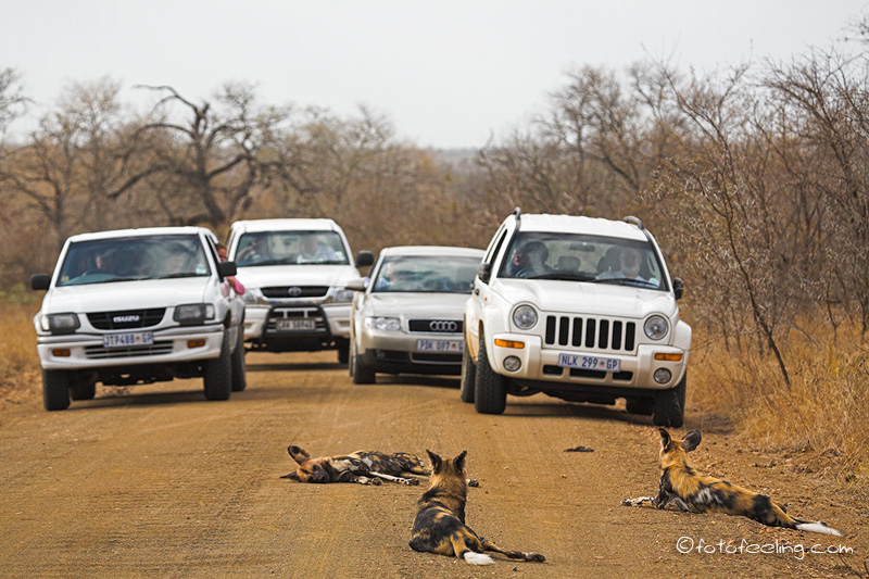 Die geteerten Straßen waren uns zuerst etwas suspekt, aber sehr schnell lernt man die Vorteile zu schätzen. Es staubt nicht mehr und oftmals wärmen sich die Tiere über Nacht auf dem Asphalt auf. So kann man gerade an den Teerstraßen am frühen Morgen auf Raubtiere treffen. Ein wenig geht vielleicht das Safarifeeling verloren, doch bei der großen Besucheranzahl ist es sehr angenehm, nicht immer den Staub des Vorfahrers zu schlucken.
