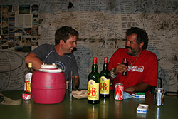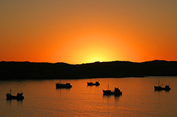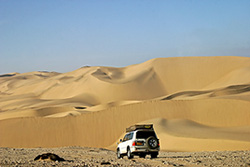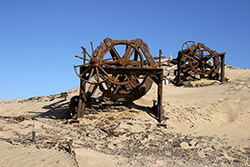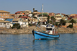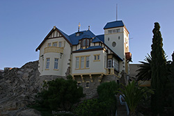 Lüderitz wurde 1883 auf Anregung des Bremer Kaufmanns Adolf Lüderitz gegründet und sollte ein Handelsstützpunkt für die Bodenschätze des Hinterlandes werden. 1908 entdeckte ein schwarzer Bahnarbeiter einen Diamanten und Tausende strömten in den Wüstenort. In der nachfolgenden Blütezeit wurden aufwändige Häuser auf den nackten Granitfelsen gebaut, die bis heute das Bild der Stadt prägen. Nach der Unabhängigkeit Namibias erlebte Lüderitz mit dem Ausbau des Tourismus eine Renaissance. So zählt die Gründerstadt Namibias heute ca. 20000 Einwohner. In Lüderitz herrscht ein rauhes Klima und die Stadt ist den stürmischen Atlantikwinden ausgeliefert wie kein anderer Ort, auch Seenebel und gelegentliche Sandstürme gehören dazu. Für den Besucher offenbart sich das nostalgische Lüderitz als eine sehr farbenprächtige Stadt, bedingt durch die zahlreichen aus der deutschen Kolonialzeit stammenden, liebevoll gepflegten Bauten im damals beliebten Jugendstil und wilhelminischen Baustil. Überragt wird die Stadt von der evangelisch-lutherischen Felsenkirche, die 1912 gebaut wurde. Die Menschen leben - ausser vom Tourismus und Diamantenabbau - hauptsächlich von der Fischerei. Der kalte Benguela Meeresstrom führt grosse Mengen Plankton mit sich und sorgt für einen großen Fischreichtum in den Küstengewässern. Da das Meer sehr sauber ist, werden auch Austern gezüchtet. Sehr lukrativ war bislang der Langustenfang. In den letzten Jahren wurden die Gewässer jedoch stark überfischt, sodass man die Fangquoten reduzieren musste. Die Wassertemperaturen liegen in Lüderitz auch im Hochsommer selten über 18 Grad. Für badelustige Touristen ist die rauhe Küste von Lüderitz also weniger einladend. Interessant ist auch der Hafen, wo stets ein geschäftiges Treiben herrscht. Fischkutter laufen ein und aus, Fische werden entladen und abgefahren. Am schönen Agate Beach, 8 Kilometer nördlich der Stadt, kann man herrliche Strand-Spaziergänge machen. Wer Glück hat, findet einen Achatsplitter im Sand, oder eine der aus kristallisiertem Gips bestehenden Sandrosen. Lohnenswert ist auch eine Fahrt über die Lüderitz Halbinsel, ein Naturschutzgebiet mit zahllosen kleinen Buchten und unberührten Stränden. Die Fahrt führt um eine Lagune herum, wo es Flamingos und viele andere Vögel zu sehen gibt. Kolmanskop: Im Jahre 1908 begann in Lüderitz der Diamantenrausch. Alles stürmte in die Wüste in der Hoffnung auf das schnelle Glück. Innerhalb von zwei Jahren entstand in der kargen Sandwüste ein kompletter Ort mit Kasino, Schule, Krankenhaus und exklusiven Wohnhäusern. In riesigen Fabrikanlagen wurde der diamanthaltige Kies gesiebt und gewaschen. Bis zum ersten Weltkrieg konnten über 1000 Kilo Diamanten gefördert werden. Nach dem Krieg gingen die Diamantenfunde sehr stark zurück. Ausserdem wurden weiter südlich bei Oranjemund erheblich größere Diamanten gefunden. So wurde Kolmanskop zur Geisterstadt. Diaz-Kreuz:Hier errichtete der portugiesische Seefahrer Bartholomeu Diaz, der auf einer Erkundung des Seeweges in den Osten unterwegs war, am 25.Juli 1488 ein Kalksteinkreuz und nannte es Padro De Santiago. 1988 wurde anläßlich der 500-jährigen Wiederkehr der ersten Landung eine Replik des alten Kreuzes enthüllt. Man erreicht die Diazspitze über einen Holzsteg. Zumteil tosten das Meer und der Wind hier ziemlich stark. Auf einem vorgelagerten Felsen kann man auch Robben beobachten. Sattelhügel - Saddle Hill - Diamantensperrgebiet: Wir besuchten Sattelhügel im Mai 2003 und waren 3 Tage im Diamantensperrgebiet unterwegs. Sattelhügel oder auch Saddle Hill liegt ca.140 km nördlich von Lüderitz. Vor Ort kann man unberührte Strände, Schiffswracks und eine traumhaft schöne Dünenlandschaft bewundern. Der Weg führt ca 30 km vor Lüderitz in das Sperrgebiet. Das Gebiet darf man nur mit Permit und einem Führer, der sich im Gebiet auskennt, befahren werden. Ohne Permit muss man mit empfindlichen Geld- oder Freiheitsstrafen rechnen. Die Route führt ca. 5-6 Stunden quer durch die Dünenlandschaft, zum Teil sind es schon extreme Strecken, bis zum Camp von Sattelhügel. Das Camp besteht aus mehreren festen Bauwerken, die noch von der Diamantenzeit übriggeblieben sind. Man hat dort feste Unterkünfte zum Schlafen, da es zum Teil in der Nacht schon sehr kalt und windig werden kann. Unser Tipp: Lüderitz hat einen schön gelegenen, von der Stadt unterhaltenen Campingplatz auf der Haifisch Halbinsel (Shark Island), wo auch das Lüderitz Denkmal steht. Man hat von dort einen schönen Blick auf den Atlantik, die Hafeneinfahrt und die Stadt. Leider sind nur wenige Standplätze windgeschützt, da es am Nachmittag ziemlich windig, fast schon stürmisch werden kann. Es ist auch relativ kühl und mit dem Wind wirds echt kalt, deshalb haben wir bisher immer in Hotels oder Pensionen übernachtet. Besonders gut gefallen hat es uns in der Pension "Zum Kratzplatz". Wer es etwas nobler haben möchte, der sollte das “Hotel Zum Sperrgebiet” aufsuchen, in dem man auch ganz hervorragend essen kann. Lüderitz ![]() ![]() ![]() |