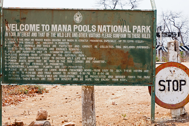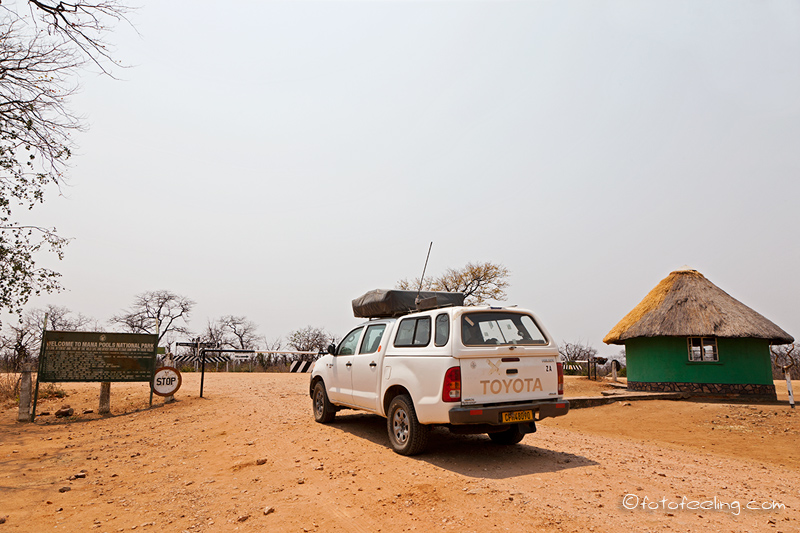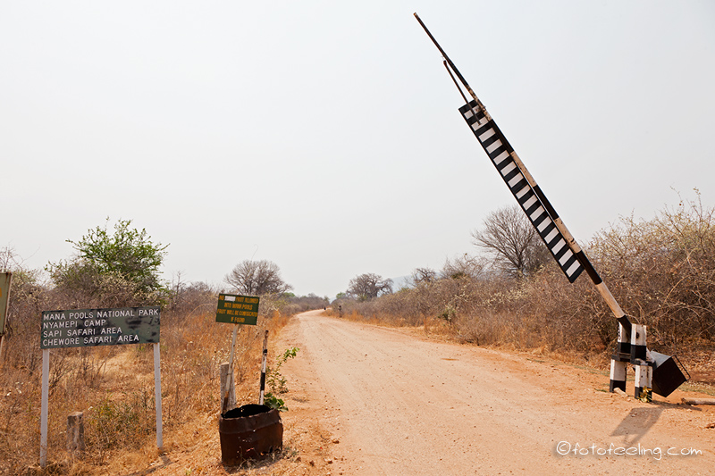 Bevor man in den Park fährt ist es notwendig sich im Zim Parks & Wildlife Office in Marongora anzumelden. Das Office befindet sich auf der Hauptstraße Makuti – Chirundu. Danach verläßt man die Hauptstraße und passiert gleich das erste Gate zum Mana Pools Nationalpark. Nach ca. 30 km überquert man über eine Brücke den Rukomeshi River. Gleich nach der Brücke erreicht man das zweite Gate, den Nyakasikane Checkpoint. Auch hier wird das Permit kontrolliert und die Ranger geben gerne Infos von anderen Touristen weiter. Nach weiteren 43 km erreicht man dann das Nyamepi Headquarters Office, wo man die Parkgebühren bzw. die Campsite bezahlen kann. Ein Vorbuchung der Campsite ist in der Hauptsaison, bzw. in der Ferienzeit der Südafrikaner dringend zu empfehlen!