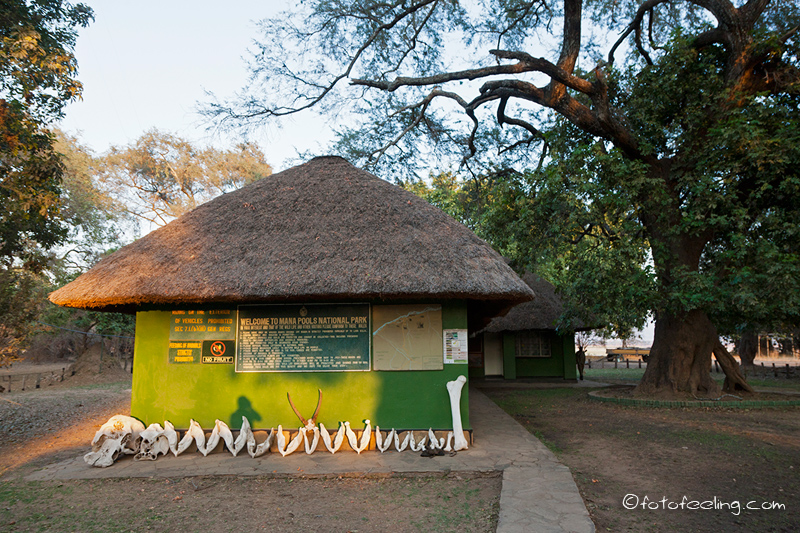 Nach 15:30 Uhr darf man nicht mehr von Marongora nach Mana Pools weiterfahren. Das soll sicherstellen, das alle Besucher vorm Dunkelwerden das Camp erreichen. Notfalls muß man am Damm hinter dem Büro von Marongora campen.