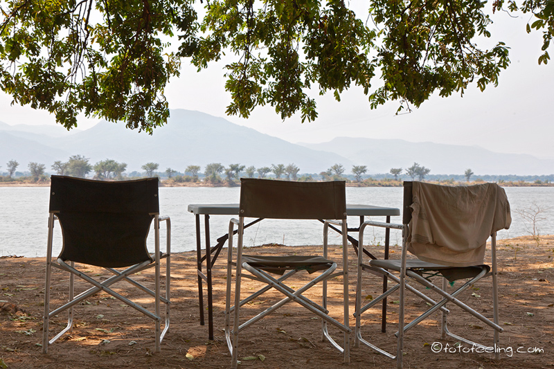 Chitake Camp 2 (Shumba): sie liegt auf einem kleinen Hügel unter einigen Baobas mit einem schönen Rundumblick auf das Escapment im Süden, im Norden auf den Sambesi und im Westen auf den Rucomechi Fluss.