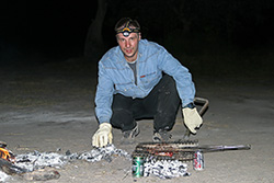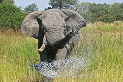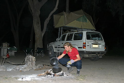 Auch Xakanaxa gefällt uns recht gut. Hier sind die Duschen und Toiletten im besten Zustand von den 4 Campingplätzen, dafür hat man nicht so viel Abstand zum Nachbarn wie auf der North Gate Campsite. Besonders gut gefällt mir hier die Abendmusik der Langnasenriedfrösche, die sich anhören wie klimpernde Eiswürfel im Glas.