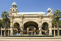 Wer den Kontrast mag, sollte nicht auf einen Besuch von Sun City verzichten. Da wir hierfür keinen Gamedrive opfern wollten, nutzten wir die Mittagzeit, um uns das Spektakel anzuschauen. Am Eingang hat man dann die Wahl zwischen zwei Preisen, je nachdem, was man machen möchte. Für 65 Rand bekommt man den einfachen Eintritt, ohne Zugang zum "The Valley of Waves" (Badelandschaft).