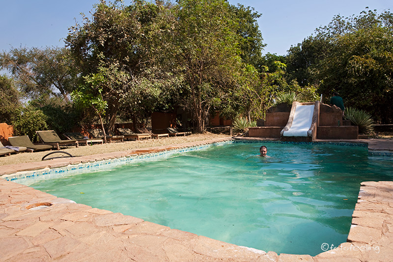 Der Campingplatz ist viel kleiner als der im Flatdog Camp. Hier findet man einen schönen Pool, der etwas erhöht liegt und über eine Treppe zu erreichen ist. Vom Pool aus hat man eine tolle Flussaussicht. Dort ist es viel ruhiger und mit etwas Glück hat man den tollen Campingplatz für sich alleine. Wir standen in der zweiten Nacht direkt am Steilufer und hatten einen wunderbaren Abend.