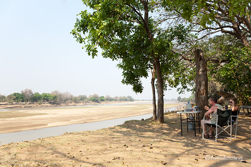 Track & Trail Camp, das direkt am Steilufer des Luangwa Flusses liegt.