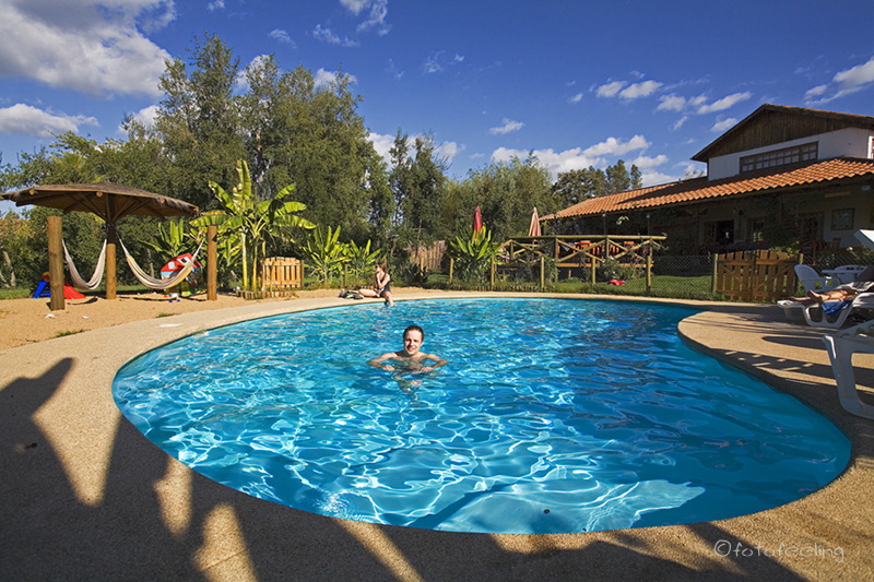 Da wir an diesem Tag bis zum Nationalpark „Los Alerces“ kommen wollten, brachen wir schon um 6.00 Uhr auf und frühstückten unterwegs im Auto. Wieder waren wie überall in Patagonien zahlreiche Kaninchen in der Dämmerung unterwegs, die ständig vor dem Auto hin und her liefen. Bis dahin hatten wir es geschafft, keins zu überfahren und waren richtig stolz auf uns, denn es lagen immer wieder überfahrene Tiere auf der Straße. Leider lief uns an diesem Morgen, als es schon hell war, ein kleiner Flitzer genau unter den rechten Vorderreifen. Auch mit Vollbremsung hätten wir keine Chance gehabt, ihn nicht zu erwischen, denn Chris hat ihn nicht einmal gesehen – ich leider schon. L Je weiter wir nach Westen kamen, desto mehr veränderte sich das Landschaftsbild. Die Ebenen wurden immer hügliger und felsiger und so fuhren wir am wunderschönen Flussbett des Rio Chubut entlang, das von vielfarbigen Felsen eingerahmt wurde. Es war wieder stark bewölkt und regnete etwas. So kamen wir am frühen Nachmittag in Trevelin an. Dort fanden wir nach einigem Suchen ein Internetcafe und meldeten uns mal wieder bei unseren Freunden im Blog. Die Zufahrt zum Nationalpark „Los Alerces“ konnten wir nur mit Durchfragen finden, aber dann war es ganz einfach und schon bald (15.30 Uhr) standen wir vor dem Eingangstor. Der Park ist 263 000 ha groß und schützt mehrere Alercenwälder (Zedernart), die nicht der Holzindustrie zum Opfer gefallen sind. Als wir den Park erreichten, hatte der Regen zum Glück aufgehört. Die Wolken hingen jedoch noch sehr tief und das Grün kam unglaublich intensiv herüber. Wir waren uns einig, dass der Park genau dieses Wetter braucht, um zu wirken. Er gefiel uns unheimlich gut. Wir fuhren am See Futalaufquen entlang, besichtigten die Kaskaden „Irigoyen“ und gingen über eine schöne Campsite in der Bahia Rosales an den See. Dort sahen wir unseren ersten Fliegenfischer und schauten ihm begeistert zu. Später wanderten wir noch 2,5 Kilometer steil bergauf zu einem kleinen Mirador mit Blick auf die Laguna Verde. Rings um uns herum standen Rinder in den Büschen und auch einige Pferde, das war irgendwie heimisch und doch so anders. Abends stellten wir uns auf die Campsite „La Rivadavia“ am gleichnamigen See. Dort gab es super Duschen, sehr saubere Toiletten, Strom, Licht und schöne Feuerstellen. Mit einem Glas Wein genossen wir noch die abendliche Stille am See, doch leider vertrieb uns bald darauf der Regen vom Strand in unsere Betten. Tageskilometer: Trelew - National Park Los Alerces 742 km Übernachtung: Camping La Rivadavia (14 Peso p. Platz) - Argentinien Parkeintritt Los Alerces: 12 Peso p. P. |