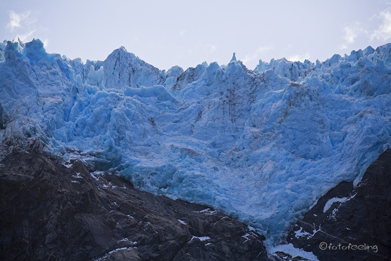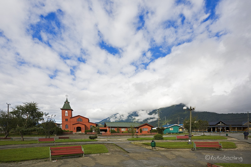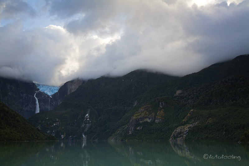 Leider war das Wetter an diesem Morgen auch nicht besser und so hingen wieder dichte Wolken über dem Gletscher. Wir machten uns trotzdem auf den Weg zum See, denn es regnete nicht und der Gletscher war etwas besser zu sehen. Chris bestand noch auf einer Bootsfahrt direkt zum Gletscher, die sich aber als ziemlich sinnlos für uns erwies, denn wir waren zwar dank des Bootes näher am Gletscher, aber viel mehr sehen konnte man auch nicht, da ein Geröllberg die Sicht auf das Ende der Wasserfälle versperrte. Man durfte zwar das Boot verlassen, aber nicht den Berg überqueren. Diese Fahrt ist sicher recht schön am Nachmittag und bei Sonnenschein, denn dann sieht man die herabstürzenden Eisbrocken besser, aber am Morgen bei Gegenlicht würde ich sie nicht empfehlen. Ab und zu schaute jetzt auch schon die Sonne heraus und wir machten uns wieder auf den Weg. Die Straße führte uns in Serpentinen immer höher in die Berge, wir sahen wieder Gletscher und viele schneebedeckte Gipfel. Da auch das Wetter immer besser wurde, genossen wir gutgelaunt die Schönheit der Natur. Immer wieder kamen am Straßenrand Hinweisschilder auf Wasserfälle, Wanderwege und andere Naturschönheiten. So schauten wir uns den Padre-García-Wasserfall an, zu dem man ca. 200 m über Stufen hinabsteigt. Leider war er etwas zugewachsen, aber alleine der Weg und die Vegetation waren klasse. Unser nächstes Ziel war der Bosque Encantada, der nicht umsonst als Märchenwald bezeichnet wird. Wir dachten schon, dass wir an ihm vorbeigefahren waren, aber dann kam rechts endlich das Schild zu seinem Eingang in Sicht. Es war unglaublich. Man verlässt die Straße und schon findet man sich im „Herrn der Ringe“ wieder. Wild wuchernde Bäume, die z. T. mit Farnen und Moosen bewachsen sind, ein kleiner Bach, wunderschöne Blüten, Insektengesumme und Vogelzwitschern – man war in einer anderen Welt voller Magie und Mystik. Wie man schon liest, war ich total begeistert und konnte mich kaum losreißen. Wir gingen, soweit der Weg es zuließ, kletterten sogar noch unter einem umgefallenen Baum durch und ließen diesen verwunschenen Wald auf uns wirken. Viel zu schnell verging die Zeit und bald saßen wir wieder in unserem Auto – die Wirklichkeit hatte uns wieder. Weiter ging es über Brücken, unter denen sich türkisfarbene Flüsse durch die Landschaft schlängelten, vorbei an Bergen und kleinen Bauernhöfen. In Coyhaique versuchten wir noch, einen Flug zur Laguna San Rafael zu bekommen, da wir im Reiseführer gelesen hatten, dass solch eine Flugreise sogar billiger sein kann als die Katamaranfahrt. Wir konnten zwar nach angestrengtem Suchen die angegebene Fluglinie ausfindig machen, aber der Preis sollte bei 1500 US $ liegen, das war uns dann doch etwas zu heftig. Leider fuhr auch der Katamaran nur noch zweimal die Woche und so mussten wir schweren Herzens auf den Besuch des Gletschers verzichten und setzten unsere Reise entlang der Carretera Austral fort. Zum Nachmittag verschwand die Sonne immer mehr hinter dicken Wolken und es wurde merklich kühler. Da fiel uns ein Berg besonders auf. Er erinnerte an ein Phantasieschloss mit vielen Türmen und trug wohl daher auch den klangvollen Namen Cerro Castillo. Wir suchten natürlich gleich nach einer Möglichkeit, diesen tollen Berg zu fotografieren und fanden schließlich eine Schlucht mit Blick auf den Berg. Dank der vielen Wolken war der Ausblick gigantisch, nur leider war es dermaßen kalt und windig, dass mir beim Fotografieren fast die Finger abfroren. Total durchgefroren fuhren wir weiter und fanden relativ schnell einen kleinen privaten Campingplatz direkt an einem kleinen Haus. Die Leute waren supernett, wir duschten in ihrem Bad und bekamen so viel Holz, wie wir wollten. Auch Trinkwasser zeigte uns die nette Besitzerin gleich. Es war ein wenig wie Camping auf dem Bauernhof. Die Hühner liefen um uns herum, die Schafe standen nahe auf der Weide und der Hofhund bewachte uns. Abends gab es dann meine beliebte Rinderfiletpfanne, aber diesmal vom Herd, denn es war bitterkalt und immer wieder peitschten Sturmböen gegen unser Auto. Tageskilometer: National Park Quelat - Nahe des Berges Cerro Casillo nach einem kleinen Pass 345 km Übernachtung: kleiner privater Campingplatz 5000 Peso p. Platz - Chile Parkeintritt Queulat: 6000 Peso p. Person Bootsfahrt am Ventisquero Colgante: 9000 Peso pro Boot |