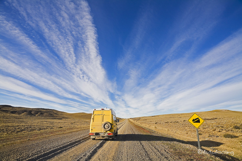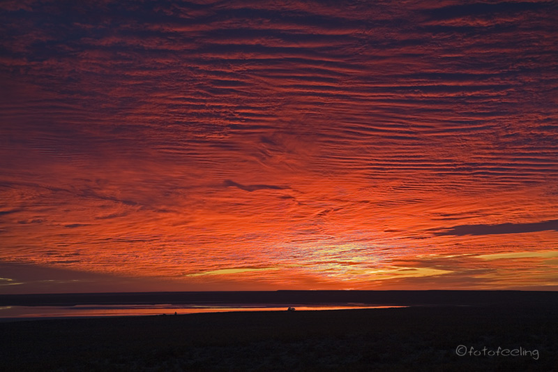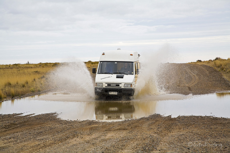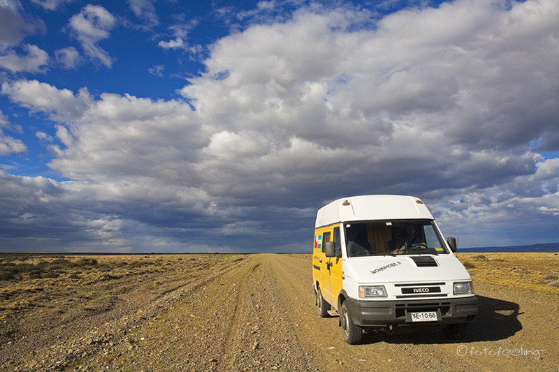 An diesem Morgen hieß es Abschied nehmen von dieser schönen Stadt mit ihrer einzigartigen Kulisse. Dicke Wolken waren über Nacht aufgezogen und erleichterten uns die Abreise. Am Garibaldi-Pass hatten wir starken Nebel, der immer dichter wurde, bis wir schließlich in Schrittgeschwindigkeit bei 20 m Sicht die Passhöhe erreichten. Hier konnte man fast gar nichts mehr sehen und es ging nur sehr langsam und vorsichtig weiter. Zu unserer Erleichterung wurde der Nebel im Tal wieder lichter und lag später als Hochnebel über den Wäldern. Ab und zu kam sogar einmal die Sonne heraus. Es war eine irre Stimmung, die perfekt zu den verwunschenen Wäldern passte. Die Grenze war wieder schnell passiert und auch die Wellblech- und Schlaglochpiste kam uns an diesem Tag gar nicht mehr so schlimm vor. Ca. 14.00 Uhr kamen wir an der Fähre an, doch zu unserem Entsetzen standen dort extrem viele Laster und Autos. Wir stellten uns schon auf eine lange Wartezeit ein, da die Fähre ja ca. eine Stunde braucht, bis sie wieder zurück ist. Glücklicherweise waren zwei Fähren im Einsatz und es passten enorm viele Autos darauf. So kamen wir nach ca. einer halben Stunde Wartezeit an Bord und waren bald wieder auf dem Festland. Hier passierten wir eine weitere Grenze von Chile nach Argentinien. Dort ging es etwas chaotisch zu, da die Grenzhäuser auf der argentinischen Seite neu gebaut wurden. So war der argentinische Zoll mit im chilenischen Grenzhaus, aber die Passkontrolle schon im neuen Haus. Alles etwas wirr, aber wir kamen zurecht und waren bald auf argentinischer Seite unterwegs. Das Wetter wurde immer schlechter und schon bald prasselte Dauerregen auf unser Auto herab. In Rio Gallegos war die Hauptstraße in Richtung Norden umgeleitet und die Beschilderung war wieder einmal so genial, dass wir irgendwo am Ortsrand herumirrten und die Auffahrt auf die Straße suchten. Dabei übersah Chris die Vorfahrt und hätte beinahe ein Auto gerammt. Aber dank Vollbremsung ging es noch einmal gut und der andere Autofahrer raste weiter. Zum Glück fanden wir auch bald darauf die Straße wieder und ließen den Ort hinter uns. Irgendwann wurde es heller und der Regen hörte auf, sogar die Sonne schaute heraus und ließ rings um uns herum die Regenwolken blau leuchten. Bei Isla Pavon hatten wir die Nase voll von der langen Fahrt, so schauten wir uns dort den Campingplatz an. Er lag am Fluss auf einer Insel und war sehr schön mit Grillstellen angelegt. Wir kauften im Ort noch Fleisch ein und grillten später gemütlich. Der Sonnenuntergang war an diesem Abend besonders schön, denn durch die Regenfront leuchtete der Himmel in verschiedenen Rottönen. Tageskilometer: Ushuaia - Isla Pavon 828 km (455 km von Ushuaia bis zur Fähre) Übernachtung Isla Pavon Argentinien: 10 Peso p. Stellplatz inkl. Dusche - Argentinien Fähre Chile: 12000 Peso |