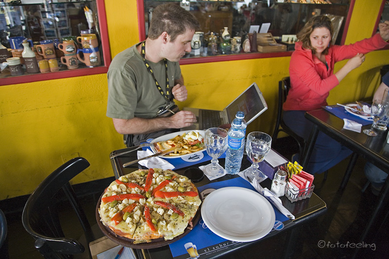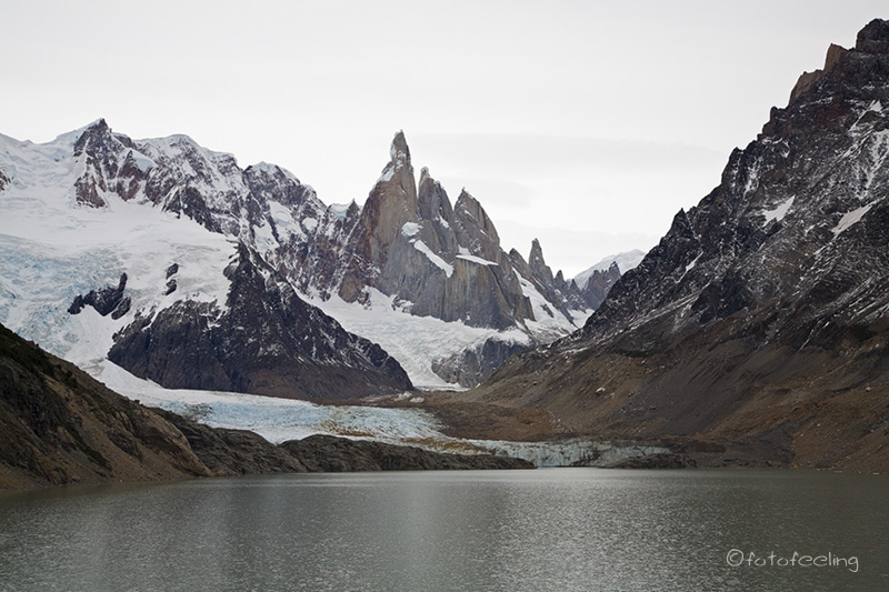 Nach einem schnellen Frühstück machten wir uns zeitig auf den Weg, denn unser Tagesziel war das bekannte Fitz Roy Massiv im Nordteil des Nationalparks Los Glaciares. Unterwegs sahen wir unzählige Guanacos, die neben zahlreichen Pferden an der Straße grasten. Sie waren zwar relativ scheu, aber man konnte sie recht gut von weitem beobachten. Die Landschaft war karg und flach. So hatten wir uns irgendwie immer Patagonien vorgestellt. Nach und nach änderte sich das Bild und schon bald waren die ersten schneebedeckten Gipfel wieder in Sicht. Das Fitz Roy Massiv zeigt sich in seiner ganzen Schönheit. Leider wurden die Wolken langsam dichter und die Sonne verschwand dahinter, aber die Berge blieben frei. Auf unserem Weg in Richtung El Chaltén konnten wir einen Kondor beobachten, der majestätisch seine Kreise am Himmel zog. Fast die gesamte Straße bis zum Ort war schon geteert und nur die letzten 10 km waren gerade in Arbeit. Mittags meldeten wir uns erst einmal in der Touristeninformation, die gleich links am Ortseingang liegt. Die Mädels dort sprachen super englisch und informierten uns über die Campingmöglichkeiten in der Stadt und die Wanderwege. Sie rieten uns auch, gleich heute noch zur Laguna Torre zu wandern, da am nächsten Tag das Wetter noch schlechter sein könnte und an diesem Tag die Gipfel frei waren. Wir stellten unser Auto auf den Parkplatz vor der Campsite Madsen, packten unsere Foto- und Verpflegungsrucksäcke und los ging es. Nun hieß es erst einmal den richtigen Weg aus der Stadt zu finden. Aber nach einigen Fragen und Schauen war es geschafft und wir standen auf dem richtigen Weg. Wir starteten unsere Tour vom Norden der Stadt aus. Es ging gleich relativ steil bergauf und so machten sich die bewegungsarmen Fahrtage schnell bemerkbar. Zum Glück ging der Weg auch flach durch einen kleinen Südbuchenwald und so konnten wir immer wieder neue Kräfte für den nächsten Aufstieg sammeln. Den ersten eindrucksvollen Blick auf den 3128 m hohen Cerro Torre und den Gletscher hat man vom Mirador Laguna Torre aus, den wir nach ca. einer Stunde erreicht hatten. Dann ging der Pfad rechts weiter, entlang des Rio Fitz Roy. Dabei durchquert man noch auf gerader Strecke einen schönen Buchenwald. Unser Ziel, den Cerro Torre, hat man immer wieder vor sich und trotzdem zieht sich der Weg noch 1,5 h hin, bis man endlich vor dem Geröllfeld steht. Nach einem letzten kurzen Aufstieg hat man dann die Lagune und den Glacier del Torre in seiner ganzen Schönheit vor sich. Dahinter ragen gewaltig die Spitzen des Cerro Torre in die Höhe. Auf der Lagune schwammen kleine Eisberge. Nur leider fehlte die Sonne, aber wir hatten ja schon Glück, dass es nicht stürmte oder regnete und es sogar relativ warm war. Direkt am See kühlte man aber schnell aus und wir zogen gerne unsere Jacken an. Hier verbrachten wir eine ganze Zeit, bevor wir uns wieder auf den Rückweg machten. Später kam sogar noch einmal kurz die Sonne heraus, die die Felsen von hinten anstrahlte. Die Wanderung war ca. 20 km lang und hat uns super gefallen. Leider hatte ich vergessen, meine Wandersocken anzuziehen und hatte so noch Tage später mit heftigen Wasserblasen zu kämpfen – aua! Zurück wählten wir den anderen Weg direkt ins Zentrum von El Chaltén. Er war landschaftlich noch etwas schöner, denn nach einem steilen Abstieg, der mit Seilen gesichert war, lief man mit Blick auf den Rio Fitz Roy weiter dem Ort entgegen, den wir gegen 17.00 Uhr wieder erreichten. Für diese 20 km lange Tour brauchten wir mit einigen Fotostopps und Pausen gute 5 Stunden. El Chaltén ist eigentlich ein kleiner staubiger Ort, aber mit einem ganz besonderen Charme. Wir entdeckten neben unzähligen Reiseanbietern und Restaurants auch eine Wäscherei. Chris lief gleich hinein und überredete die Frau, dass wir ihr sofort unsere Wäsche bringen konnten und sie dann um 21 Uhr wieder abholen würden. Ca. 4 h braucht sie ungefähr dafür und wir waren gerade noch so in der Zeit. Nebenbei entdeckten wir auch noch eine Parrilla mit einem Asadogrill im Fenster. Chris bekam gleich riesige Augen und verschwand in dem Restaurant. Witzigerweise kam er mit der Info wieder, dass wir gleich nebenan im Hostel „Youth“ gegen Bezahlung heiss duschen könnten und es dort auch Internet gäbe. So stand dann schon das Abendprogramm. Nachdem wir die Wäsche weggebracht hatten, gingen wir erst einmal heiss duschen und danach noch ca. 1 h ins Internet. Dann fielen wir hungrig in die Parrilla ein. In dem Restaurant aßen wir unser bestes Grillfleisch, tranken dazu eine leckere Flasche Rotwein und Chris holte noch nebenbei die Wäsche wieder ab. Zum Campen gingen wir auf den kostenlosen Platz am Ortseingang, denn dort war die einzige Möglichkeit, mit dem Auto zu stehen. Sehr zufrieden schliefen wir bald tief und fest. Tageskilometer: Estancia La Siberia - El Chaltén 224 km Wanderung zur Laguna Torre: 20 km Übernachtung: Campsite direkt gegenüber der Touristeninformation in El Chaltén ( kostenlos) |