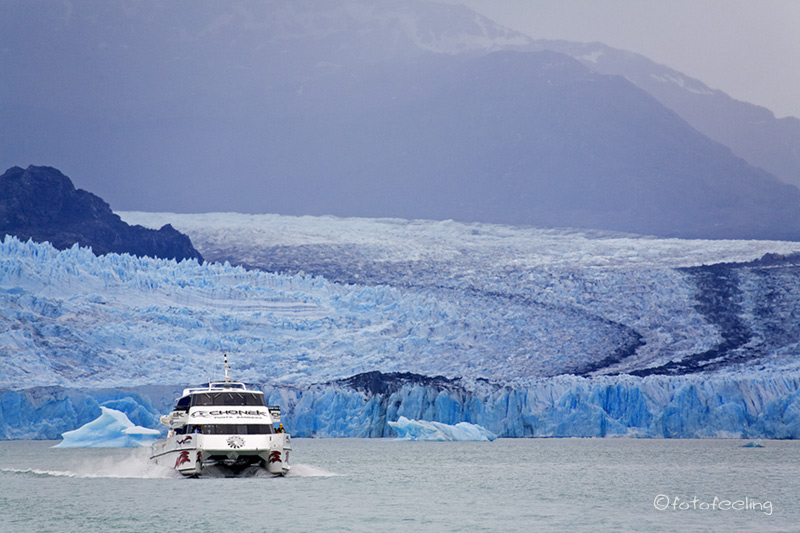 Gleich am Anfang hielt das Boot bei einem Kondornest in einer Felswand, in dem ein Kondor mit einem Jungvogel saß. Es war schon aufregend, diese tollen Vögel einmal aus der Nähe anzuschauen. Als nächstes erreichten wir den Spegazzini-Gletscher, der sich uns von seiner schönsten Seite zeigte, denn gerade als wir dort ankamen, schaute noch einmal kurz die Sonne durch die Wolken und beleuchtete das Eis. Das war wirklich eine beeindruckende Vorstellung. Dann ging die Fahrt zügig mit ca. 45 km/h weiter zum nächsten Höhepunkt, dem Upsala-Gletscher. Die Gletscherkante ist 16 km lang und schon durch ihre Größe sehr eindrucksvoll, da kommt man sich selbst in dem großen Katamaran sehr klein vor. Weiter ging es durch riesige blaue Eisberge, die zum Teil in den verschiedensten Blautönen schimmerten. Durch die schnelle Fahrt und immer wieder etwas Regen hatte es ziemlich abgekühlt und wir waren froh, unsere dicken Jacken, Mützen und Handschuhe mit an Bord genommen zu haben. Zum Abschluss legten wir in der Onelli-Bucht an und hatten dort zwei Stunden Aufenthalt. Eine englisch sprechende Reiseleiterin führte uns durch einen kleinen Wald voller knorriger Bäume und Farne zur Onelli-Bucht, in der mehrere Gletscher zu sehen sind. Im See schwammen viele kleine Eisberge. Chris konnte sogar einen „fangen“ und mal kosten. Leider setzten sich dann etwas später die Regenwolken durch und so wanderten wir im Dauerregen zurück auf das Boot. Die Rückfahrt verlief zügig und ohne Stopps. Trotzdem waren wir fast die ganze Zeit fasziniert draußen und genossen die Landschaft. Chris musste sich noch den obligatorischen Gletschereis-Whisky kaufen, denn zuvor hatte die Mannschaft einen großen Eisbrocken aus dem Wasser gefischt. Der Ausflug war ein voller Erfolg und wir können diese Tour nur jedem Reisenden empfehlen, denn es ist einfach gigantisch, so nah an die Gletscher und Eisberge heranzukommen, die inmitten einer wunderschönen Landschaft liegen. Den restlichen Nachmittag verbrachten wir am Lago Argentino und machten ein paar Schlechtwetterbilder, bei sagenhaftem Wind und einer bedrohlichen Wolkenstimmung. Zum Abend fuhren wir wieder auf unsere Campsite am Lago Rocca, genossen die heissen Duschen und verarbeiteten die Eindrücke des Tages. Tageskilometer: Puerto Bandera - Lago Argentino - Lago Rocca 126 km Übernachtung: Lago Rocca ( 24 Peso) - Argentinien Parkeintritt: 30 Peso am Hafen Dreigletscherbootsfahrt: 175 Peso p. P. | |||