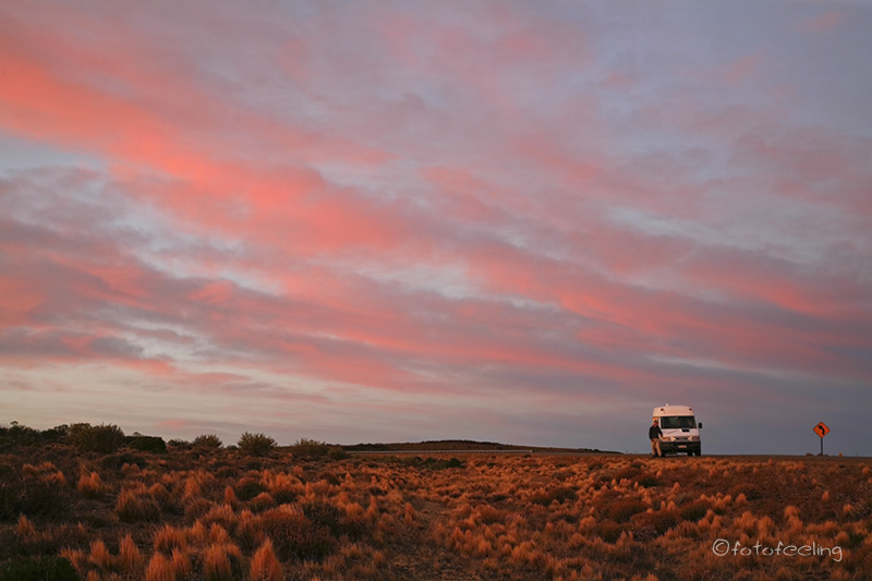 Wir starteten pünktlich um 6.30 Uhr in Richtung Punta Norte, diesmal jedoch über den Küstenweg. Unterwegs setzte langsam die Dämmerung ein und man konnte schon einen spektakulären Sonnenaufgang erahnen. Jetzt fehlte uns nur noch die entsprechende Kulisse. Leider war das Meer noch zu weit weg, aber wir entdeckten von der Straße aus einen kleinen See, zu dem wir gingen und einen wahnsinnig schönen Sonnenaufgang erlebten. Wir besichtigten an diesem Morgen erst einmal Punta Delgada. Dort sollte es neben Seelöwen noch eine kleine See-Elefantenkolonie geben und die wollten wir uns gerne einmal aus der Nähe anschauen. Wir parkten unser Auto und gingen gucken, aber leider war vor uns eine Steilwand bis zum Meer hinab. Die Tiere waren viel zu weit entfernt und kaum zu erkennen. Es gab auch keinen Weg hinab und so waren wir bald wieder unterwegs. Auch an einer anderen Stelle war zwar ein sehr gutes Wegenetz eingerichtet, aber man schaute von oben auf die Tiere, die sehr weit entfernt waren und es gab keine Möglichkeit etwas näher heran zu kommen. Ein anderer Weg führte zwar bis fast an den Strand, aber an dieser Stelle gab es, jedenfalls zu dieser Zeit, weder Seelöwen noch See-Elefanten zu sehen. In Punta Norte war überhaupt nichts los. Wir hatten am Vortag vergessen, nach der Flut-Zeit zu schauen und am Vormittag war natürlich gerade Ebbe. Dafür lagen die Seelöwen an diesem Morgen etwas näher und wir konnten sie auch ohne zu große Brennweiten beobachten. Leider war das Licht sehr schlecht, denn die Sonne hatte sich mal wieder hinter einer Wolkenschicht versteckt. Hinzu kam ein kühler Wind und so verbrachten wir die Wartezeit bis zur Flut am Nachmittag im Auto mit Lesen und dem Beobachten von einer Fuchsfamilie und Gürteltieren. Der Höhepunkt an diesem Vormittag war ein total lieber Kater, der erst unsere Leberwurst verdrückte und sich dann bei uns im Camper zusammenrollte und schlief. Er stand nur auf, wenn er mal musste oder etwas zu trinken wollte. Am Rangerhaus erfuhren wir, dass der Orca vom Vortag „Mely“ hieß und sie mit einem erwachsenen Jungtier unterwegs war. Es gibt auch eine eigene Homepage zu den Walen: www.orca-puntanorte.com Wir hofften bis 18.00 Uhr auf die Wale und trotz einsetzender Flut ließ sich an diesem Tag leider kein Orca blicken. So entschlossen wir uns noch an diesem Tag nach Trelew zu fahren und dort zu übernachten, damit die Strecke am nächsten Tag nicht mehr ganz so weit wäre. Alles ging ganz prima, bis wir in Trelew waren und die Campsite suchten. Sie sollte auf der Strecke nach Rawson liegen, aber wir konnten sie einfach nicht finden. Es war bis dahin auch schon dunkel. Chris fragte dann noch einmal an einer Tankstelle und dabei erfuhren wir, dass es noch eine andere Straße nach Rawson gibt. Mit diesem Wissen war es natürlich kein Problem mehr, die Campsite zu finden, die an der alten R7 liegt. Die Stellplätze waren etwas eng, aber da wir die einzigen Besucher waren, war das natürlich kein Problem. Witzig war auch, dass Duschen und Toilette in einem Raum waren und der war so eng, dass es echt schwierig war sich zu duschen, ohne alles in dem Raum nass zu machen. Aber es war sauber und das Wasser schön warm. Was will man mehr. Ärgerlich waren nur die vielen Mücken, die uns schwer zusetzten und uns mindestens eine Stunde Schlaf gekostet haben. Tageskilometer: Halbinsel Vades - Trelew 422 km Übernachtung: Camping Patagonia, Trelew (14 Peso p. Platz) - Argentinien |