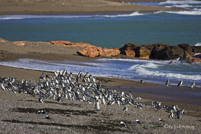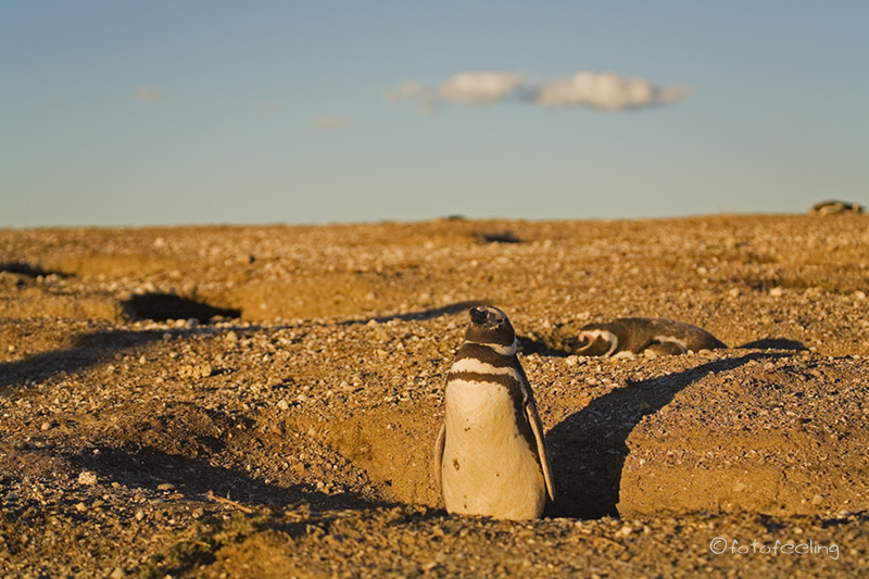 Um 6.00 Uhr früh starteten wir, denn an diesem Tag war die Pinguinkolonie von Punta Tombo unser Ziel. Die Schlechtwetterfront hatte sich verzogen, dafür bekamen wir aber den patagonischen Wind so richtig zu spüren. Er kam zum Glück seitlich, sonst wären wir bestimmt nicht mehr von der Stelle gekommen. ![]() Die Straße führte uns direkt am Meer entlang und immer wieder genossen wir die Aussicht auf die hohen Wellen, die sich an den Felsen brachen. Ca. um 17 Uhr kamen wir in Punta Tombo an. Dort erkundigten wir uns wegen der Übernachtung und erfuhren, dass wir uns mit dem Camper auf dem Parkplatz an der Confilteria (kleines Cafe) stellen können. Klasse, so brauchten wir nicht weiter fahren und konnten uns beruhigt auf den Weg zu den Pinguinen machen. Punta Tombo ist die größte Pinguin-Nistkolonie in Südamerika, in der über eine halbe Million Magellanpinguine leben bzw. ihre Jungen aufziehen. Leider waren zu dieser Jahreszeit nicht mehr viele Pinguine dort, aber es reichte aus, um diese witzigen Tiere aus der Nähe betrachten zu können. Einige Nachzügler wurden auch noch von den Eltern versorgt und bettelten pausenlos nach Futter. Die meisten Jungvögel waren jedoch schon auf dem Weg in den Norden nach Brasilien und die Altvögel würden ihnen im April folgen. Leider war das Gelände so abgezäunt, dass man nur an einer kleinen Bucht ans Meer herankam und dort die Pinguine beobachten konnte. Ansonsten konnte man nur von der Steilküste schauen oder hatte die Möglichkeit, an den Brutplätzen Pinguine zu beobachten. Man kam aber sehr nah an die Tiere heran und musste sogar aufpassen, dass man keines der Tiere trat. Um Pinguine direkt aus der Nähe und am Meer zu beobachten, braucht man ein extra Permit, das 200 US$ kostet und in der Stadt Rawson bei einer Behörde beantragt und gekauft werden muss. Das Gleiche gilt auch für die Halbinsel Valdez, erklärte uns ein netter Ranger. Abends waren wir alleine auf dem Parkplatz und spielten noch mit drei jungen Katzen, die zum Rangerhaus gehörten. Tageskilometer: Isla Pavon - Punta Tombo 920 km Übernachtung: Besucherparkplatz von Punta Tombo (kostenlos) - Argentinien Eintritt Punta Tombo: 20 Peso p. P. |