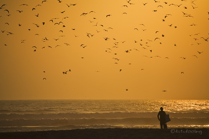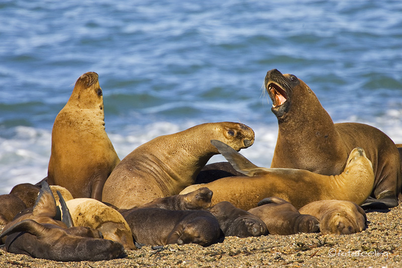 Um 8.00 Uhr wanderten wir wieder zu den Pinguinen und verbrachten einen ruhigen Morgen ganz alleine an der Kolonie. Gegen 10.45 Uhr kamen die ersten Leute, da gingen wir gerade und fuhren weiter in Richtung Halbinsel Valdés. Sie ist ein 3600 km² großes Naturschutzgebiet mit einer Küstenlänge von über 400 km. Dort leben je nach Jahreszeit Seelöwen, See-Elefanten, Magellanpinguine, Orcas, Guanakos, Nandus, Maras, Füchse, Gürteltiere und zahlreiche Seevögel. Die größte Attraktion ist jedoch der Südliche Glattwal der sich vor Valdés paart und dort seine Jungen aufzieht. Man kann ihn zwischen Juni und Dezember beobachten. Aber auch Orcas werden besonders von Mitte Februar bis Mitte April vor der Küste gesichtet. Die Orcas jagen dort Seelöwen und landen dazu regelrecht auf dem Strand, was auf uns natürlich einen unwiderstehlichen Reiz ausübte. Gleich an der Touristeninformation erfuhren wir, dass an diesem Tag zwei Orcas in Punta Norte gesichtet wurden. So fuhren wir schnell nach Punta Piramides, tankten dort unser Auto an der einzigen Tankstelle der Halbinsel auf, besichtigten noch schnell den Campingplatz und fuhren dann auf dem kürzesten Weg nach Punta Norte. Auf der Straße standen riesige Pfützen, aber zum Glück war der Regen schon ein paar Tage her und so konnten wir die meisten Stellen gut umfahren. Ansonsten war die Straße sehr gut ausgebaut und in einem tadellosen Zustand. In Punta Norte schnappten wir unsere Fotoausrüstung und eilten an den Strand. Dann kam erst einmal die Ernüchterung und Enttäuschung, denn wir standen oberhalb des Strandes und waren sicher 500 m vom Meer entfernt. Frustriert packte ich das 100-400er Objektiv wieder weg und wir bauten das 500er mit einem 2-fach-Konverter auf. Die Orcas waren zwar zu sehen, aber ca. 800 m weit weg und auch mit so einer großen Brennweite konnte man sie kaum fotografieren. Außerdem hielten sie sich mehr in einer anderen Bucht auf, aber sie kamen immer wieder bei uns vorbei. Die Seelöwen waren sehr unruhig und trauten sich natürlich kaum ins Wasser. Das Schauspiel war trotzdem so faszinierend, dass wir die Zeit vergaßen und uns erst kurz vor Sonnenuntergang wieder auf den Weg zurück machten. Die Sonne stand schon so tief, dass wir fast gar nichts mehr sehen konnten. Hinzu kamen tausende von fliegenden Ameisen, die auf unsere Scheibe prallten und dort ihr Säuregemisch hinterließen. Auch hatten wir zum Zurückfahren einen anderen Weg gewählt, da Chris sich um eine Stunde mit dem Sonnenuntergang vertan hatte, so kamen noch mehr Pfützen dazu und durch einige mussten wir durchfahren. Bald konnten wir gar nichts mehr sehen. Da half nur noch eine Fenstergrundreinigung mit Zewa und Wasser. Um 21.00 Uhr kamen wir dann endlich auf der Campsite an, die Duschen waren natürlich schon geschlossen, aber dafür mussten wir auch keine Gebühr mehr zahlen, da niemand mehr an der Kasse war. Uns gegenüber stand ein großer Truck mit einem Elefanten drauf und einem deutschen Kennzeichen. Chris war natürlich gleich neugierig und so lernten wir Rita und Freddy von www.reckfilm.de kennen. Später grillten wir noch und beschlossen, am nächsten Tag wieder nach Punta Norte zu fahren. Tageskilometer: Punta Tombo - Halbinsel Valdes 510 km Übernachtung Punta Piramides Argentinien: (kostenlos, da keiner mehr zum kassieren da war) Parkeintritt Valdés: 35 Peso p. P. |
