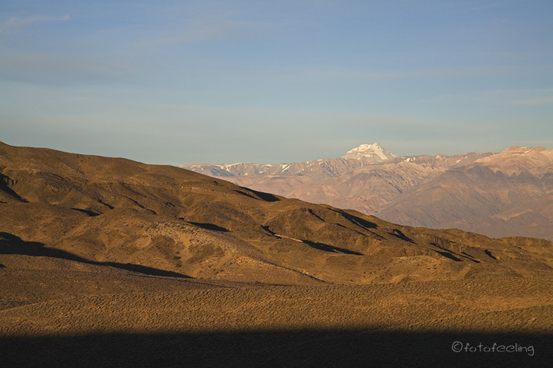 Den Sonnenaufgang verbrachten wir wieder am See mit Blick auf den Vulkan Lanin. Es war ein wolkenfreier, aber stürmischer Morgen mit viel Sonne. Zurück auf der Ruta 40 fuhren wir in Richtung Zapala auf einer schönen 1000 m hohen Ebene, ständig begleitet vom Vulkan Lanin. Die Strecke war recht kurvig, aber sehr schön zu fahren. In Zapala tankten wir unseren „Bully“ auf. Nach einem Pass endete die gut ausgebaute Strecke und wir hatten eine Schlagloch-Schotter-Teerpiste vor uns. 60 km kämpften wir uns durch die bisher übelste Straße, da half auch die schöne Landschaft am Rio Grande nichts mehr und wir waren sehr froh, als sie endlich ohne Reifenschaden hinter uns lag. 40 km vor Malargüe entdeckten wir eine Campsite, die recht nett aussah. Erst einmal fuhren wir jedoch weiter, da wir uns die Laguna Llancancelo mit den zahlreichen Flamingos anschauen wollten. Leider waren die Wege dorthin mal wieder bescheiden beschrieben und auch am Rangerhaus war niemand, so dass wir uns gleich zweimal verfuhren. Ein anderer Weg und einige Gatter später waren wir dann endlich über eine unmögliche Straße mit vielen Pfützen an der Lagune. Nun sollten wir das Auto stehen lassen und zu Fuß zu den Vögeln marschieren. Tja, dank der schlechten Ausschilderung war so viel Zeit vergangen, dass die Sonne schon fast hinter den Bergen verschwunden war. So begnügten wir uns mit einem Blick aus der Ferne und beschlossen, zu der netten Campsite 40 km vor Malargüe zurückzufahren. Wieder mussten wir den schlechten Weg zurück und konnten dank der vielen Pfützen bald kaum noch aus unserer Frontscheibe schauen. Auf der Campsite kamen wir im Dunkeln an und gingen erst einmal den Stress des Tages abduschen. Leider war die einzige schön angelegte Campsite schon belegt und wir mussten mit dem Fußballplatz neben der Ruta 40 vorlieb nehmen. Dafür war aber ein Wildwasserfluss gleich nebenan und Chris konnte unser Trink- und Brauchwasser wieder auffüllen. Ich kochte uns noch eine leckere Filetpfanne und bald darauf schliefen wir tief und fest. Tageskilometer: Lago Huechulafquen - Campsite Refugio de Montana 889 km Übernachtung: Campsite Refugio de Montana (13 Peso inkl. Duschen) - Argentinien |