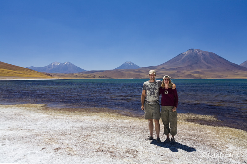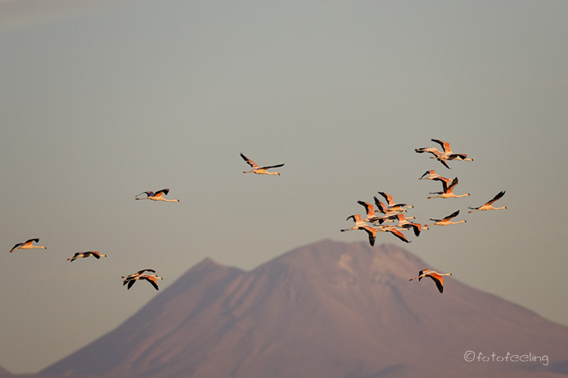 Für diesen Tag hatten wir uns den Besuch der Lagunen Miñique und Miscanti vorgenommen, aber dazu mussten wir erst einmal tanken. Wieder irrten wir 30 min durch die kleine Stadt, trotz Stadtplan, denn die Einbahnstraßen führten überall hin, nur nicht zum Ortskern und damit zur Tankstelle. Gegen 8.00 Uhr hatten wir sie endlich gefunden, aber sie war noch geschlossen und wir fragten einen Mann am Hotel nach den Öffnungszeiten. „Gleich - 8 Uhr“ sagte er und wir stellten uns wieder an das Tor, aber es öffnete keiner. In der Wartezeit kochte ich Kaffee und machte uns Frühstück und Chris schaute noch einmal zu Fuß, ob wir auch wirklich richtig sind. Als er zurückkam, war das Tor offen und wir konnten endlich um 8.30 Uhr tanken. Wir wunderten uns über die ungewohnte Unpünktlichkeit und schoben es auf den Tankwart, denn der gleiche Mann, der uns Auskunft gegeben hatte, war auch der mufflige Tankwart. Den Weg zu den Lagunen fanden wir ausnahmsweise ohne Probleme. Es ging am Salar de Atacama und den Dörfern Toconao und Socaire vorbei. Der Weg war recht gut, nur die letzten 26 km waren unbefestigt und die letzten 6,5 km das übelste Wellblech überhaupt. Die Lagunen wurden nach den Namen der zwei Berge benannt, an denen sie liegen. Sie sind von toller tiefblauer bis türkiser Farbe und liegen auf über 4000 m. Ein gutes Training für unsere Bolivientour, fanden wir. Wir verbrachten dort einige Stunden und machten uns am Nachmittag auf den Weg zur Laguna Chaxa am Salar de Atacama. Dort leben und brüten zahlreiche Flamingos. Leider ist auch an dieser Lagune der Bewegungsraum durch feste Wege sehr eingeschränkt und man kann oft die Flamingos nur aus der Ferne bewundern. Zum Glück waren einige Vögel sehr nah und ließen sich auch durch uns nicht stören. Besonders schön und farbenfroh war es dort zum Sonnenuntergang. Immer wieder flogen Flamingos laut schnatternd über uns hinweg, angestrahlt vom letzten Licht des Tages. Ein wirklich schönes Erlebnis. An der Laguna Chaxa lernten wir Dominik kennen. Ein Wildlifefotograf, der Touren in Chile und Argentinien für andere Fotografen anbietet und vor Ort die Möglichkeiten zum Fotografieren auskundschaftet. Er spricht zum Glück perfekt englisch und so konnten wir uns prima verständigen. Wir nahmen ihn mit zurück nach San Pedro, da sein Auto in der Werkstatt war und gingen später noch gemeinsam im „Adobe Cafe“ essen. Zurück auf der Campsite packten wir unsere Sachen für den Bolivientrip zusammen und gingen bald erschöpft ins Bett. Tageskilometer: 276 km Camping Takha Takha Hotel in San Pedro de Atacama (4500 p. P.) - Chile Eintritt Laguna Miscanti und Miñique: 4000 Peso p. P. Eintritt Laguna Chaxa: 4500 Peso p. P. |