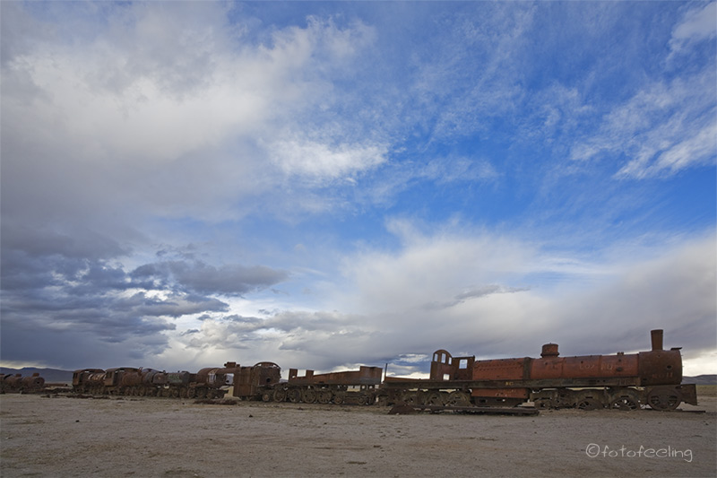 Sehr früh brachen wir an diesem Morgen auf. Wir fuhren mitten durch den Salzsee, stellenweise auf der trockenen Salzkruste und stellenweise durch Wasser. Pünktlich zum Sonnenaufgang kamen wir an der Isla Pascado an und unser Fahrer hielt mitten auf dem Salzsee und ließ uns aussteigen. So konnten wir der Sonne zuschauen, wie sie über den Horizont kam und hatten die Kakteen-Insel im allerersten Morgenlicht. Etwas später erkundeten wir die Insel. Sie war über und über mit Kakteen bewachsen und hatte eine sehr scharfkantige Steinkruste, so dass man sich schon fragte, wie dort die Kakteen wachsen können. Wir kletterten über die Insel, bis uns unser Fahrer zum Frühstück rief und machten uns dann auf den Rückweg. Irgendwie kam ich dabei ins Stolpern und flog der Länge nach auf diesen extrem harten scharfkantigen Boden. Meine Hand blutete gleich und mein Bein sah noch viel schlimmer aus. Zum Glück hatte ich im Auto meine Traumeelsalbe griffbereit und konnte mich verarzten. Das Frühstück schmeckte trotzdem. Aber die Kratzer werden mich noch einige Zeit an diesen Sturz erinnern. Weiter ging die Fahrt über den Salzsee. Unser Fahrer zeigte uns noch in tiefen wassergefüllten Löchern Salzkristalle, die viereckig waren und rosa leuchteten. Mit einer Eisenstange holte er ein paar Kristalle heraus und wir bestaunten die Schönheit. Natürlich hat uns ein Salzkristall nach Hause begleitet und schmückt nun unsere Fensterbank. Etwas später fuhren wir wieder durch Wasser, da gab es für Chris kein Halten mehr. Er deutete unserem Fahrer zu stoppen und ihn hinauszulassen und schickte uns quer über den See. Edson hatte gleich begriffen, was Chris wollte und es machte ihm anscheinend auch Spaß, über den Salzsee zu brettern. Das Spiel spielten wir mehrmals und dann durfte ich auch noch mit hinaus und mir salzige Füße holen. Aber das war es wert und es sind auch ein paar witzige Bilder entstanden. Irgendwann kamen wir am „richtigen“ Salzhotel mitten auf dem Salzsee an. Die Lage war wirklich genial, aber innen hatte uns unser Hotel viel besser gefallen und war nicht so überlaufen. Wir hielten dann noch einmal an einer Salzgewinnungsstätte und machten eine frühe Mittagspause gleich in dem Dorf am Salzsee. Dort poste noch ein zahmes Lama für Chris und die zwei hatten ihren Spaß. Nach dem Essen ging es auf direktem Weg nach Uyuni, wo uns unser Fahrer bei der bolivianischen Reiseagentur herausließ. Dort sollten wir vier Stunden bis 16.00 Uhr warten, denn das Auto musste vom Salz befreit werden. Wir schauten uns nur ungläubig an, vereinbarten 15.00 Uhr mit Edson und fragten nach einem Internetcafe. So brachte er uns noch schnell zur Stadt und ließ uns dort hinaus. Wir fanden auch bald einen Internetladen und meldeten uns mal wieder bei unseren Freunden daheim. Über der Stadt zog langsam ein Gewitter auf und es stürmte und blitzte. Es kam jedoch kein Regen und das Gewitter zog weiter. Dann klarte es wieder auf und wir schlenderten weiter durch die Stadt. In einer kleinen Einkaufspassage griff uns auf einmal jemand ins Genick und rief „hands up“. Ich zuckte vielleicht zusammen. Chris war da viel gelassener und grinste Norbert an, der sich diebisch über seinen gelungenen Scherz freute. Die zwei wanderten noch weiter durch die Stadt. Wir mussten jedoch langsam zurück zur Agentur. Die nächste Gewitterfront näherte sich uns und es war ein Wahnsinnslicht. An diesem Tag sollten wir ja noch einen Zugfriedhof besuchen und das Licht wäre genial gewesen, aber leider kam unser Fahrer erst um 17.00 Uhr zurück und ließ uns so lange vor der Agentur warten. Chris war kurz vor dem Platzen, aber er sagte kein Wort und setzte sich nur wütend ins Auto. Natürlich war am Eisenbahnfriedhof kein Licht mehr, trotzdem gefiel er uns ausgesprochen gut und die Gewitterstimmung passte hervorragend zu den rostigen Zügen. Mit etwas Sonne wäre es natürlich noch schöner gewesen, aber es half ja alles nichts. Als es dann noch zu regnen anfing, fuhren wir wieder weiter. Kurz hinter der Stadt hielt Edson den Wagen an und tauschte mit dem 12-Jährigen das Steuer. Das Herz rutschte mir fast in die Hose. Bei Regen und Sturm fuhr uns nun ein Kind. Der Junge fuhr sehr langsam fast zwei Stunden lang und es war schon längst dunkel draußen, als wir endlich von der Straße abbogen und die zwei wieder das Steuer wechselten. Wir hofften schon, dass wir gleich an unserem Hotel wären, aber es sollte noch zwei weitere Stunden über raue Pisten und durch Wasserfurten bis nach Villa del Mar gehen. Endlich um 22.15 Uhr waren wir am Ziel und Edson meinte, ob wir vor dem Essen noch einen Matetee wollten. Uns langte es und wir gingen ohne Essen gleich ins Bett. Das war einfach zu viel für einen Tag gewesen und wir hatten genug zu verdauen. Tageskilometer: Atulcha - Salar de Uyuni - Uyuni - Villa del Mar 360 km Übernachtung: Unterkunft bei Villa del Mar - Bolivien |