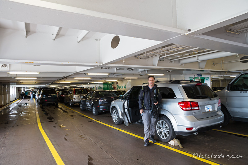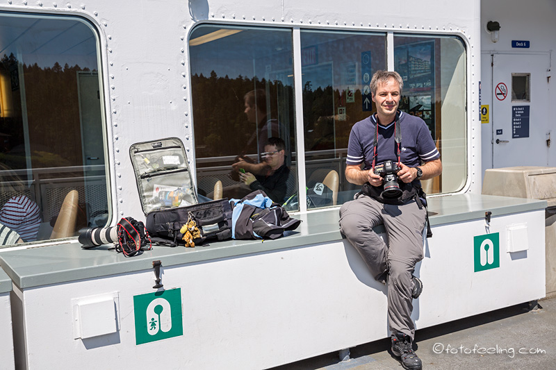 Während wir aufs Verladen warteten, packten wir unsere Tagesrucksäcke, bestückt mit Büchern und Semmeln, Müsliriegeln, Obst und Wasser zusammen, da man während der Fährfahrt nicht mehr zum Auto zurück durfte.