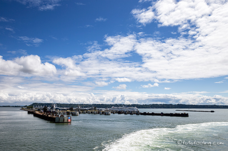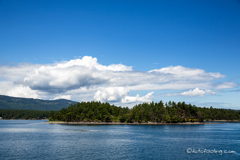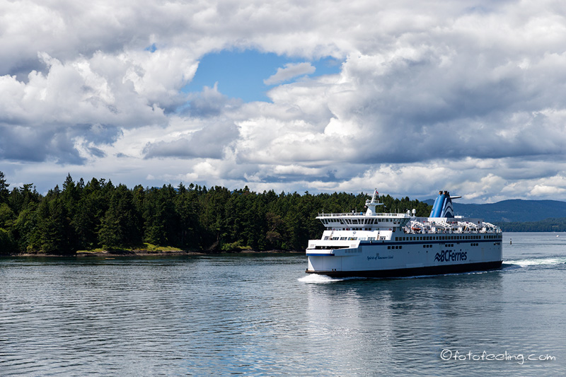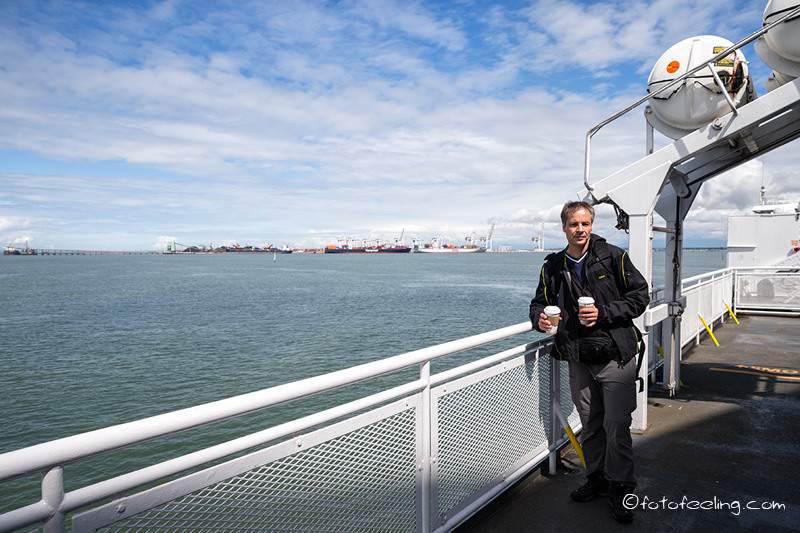 Jedenfalls bekamen wir alles, was wir für unsere Campingtour benötigten, vom Mückenschutz bis zum Wasserkanister, einer Kühlbox, Stühlen usw. Eine super gute Axt erstand Chris noch in einem Baumarkt und im Liquor Store wanderten das erste kanadische Bier und kanadischer Cider in unser Auto. Gut versorgt machten wir uns auf den Weg zur Fähre, denn wir wollten das schöne Wetter nutzen und nach Vancouver Island übersetzen. Dank der guten Beschilderung fanden wir sofort den richtigen Weg und entschieden uns gleich von Tsawwassen nach Swartz Bay (Victoria) überzusetzen. Schon unterwegs wurden wir durch ein Schildersystem darauf hingewiesen, dass noch genug Plätze für die Überfahrt zur Verfügung stehen. Wir bekamen die Fähre um 11 Uhr. Die Sonne schien vom Himmel und wir genossen die ca. 45 Minuten Überfahrt. Möwen umkreisten kreischend das Schiff und ich bekam sogar einen guten Starbucks Kaffee, den wir in der Sonne schlürften, dazu noch ein paar Zimtteilchen vom Frühstück und meine Welt war in Ordnung.
