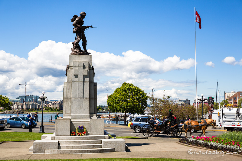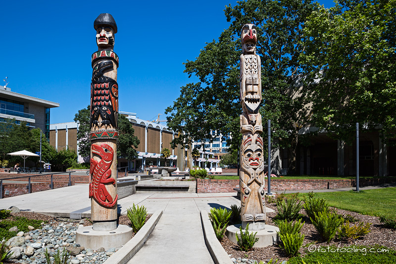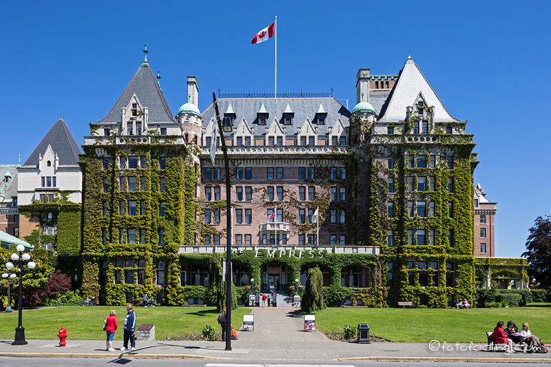 Schon vom Hafen aus konnten wir einen ersten Blick auf die efeubewachsene Fassade des Fairmont Empress Hotels werfen. Unser Weg führte uns zum alten Parlamentsgebäude vor dem eine schöne Rasenfläche mit Springbrunnen angelegt war. Immer wieder standen bunt bemalte Totempfähle am Straßenrand. Wir schlenderten weiter und bewunderten das stattliche Empress Hotel, das nun in seiner ganzen Schönheit vor uns lag. Danach spazierten wir noch durch die Stadt. An diesem warmen Tag gab es natürlich noch ein Eis. Etwas später beendeten wir die Runde wieder im Hafen. Wir schauten den Wassertaxis zu, als Chris mich auf einmal fragte, wo denn meine Bauchtasche sei. Mein Herz blieb für eine Sekunde stehen, als ich zu meinem Bauch fasste und wirklich, sie war nicht da. Ich hatte sie seit der Fährfahrt nicht mehr gesehen. Siedend heiß ging mir durch den Kopf, dass ich sie auf der Toilette der Fähre abgeschnallt hatte und ab diesem Zeitpunkt konnte ich mich beim besten Willen nicht mehr an die Tasche erinnern. Wir gingen zurück zum Auto. Ich mit hängenden Schultern und Chris voller Zuversicht, dass ich die Tasche im Auto gelassen hatte. Ich ließ ihn schauen, denn ich war immer noch in einer Art Schockstarre, denn in der Tasche war relativ viel Bargeld und eine Kreditkarte. Chris wühlte im Auto herum und holte mit triumphierendem Blick meine Tasche aus dem Auto. Sie war hinter den Sitz gerutscht aber unversehrt. Ich war vielleicht froh, aber da ich nicht so gerne mit der Bauchtasche herumlaufen wollte, musste Chris nun auch noch meinen Geldbeutel einstecken und schon war die Welt wieder in Ordnung.