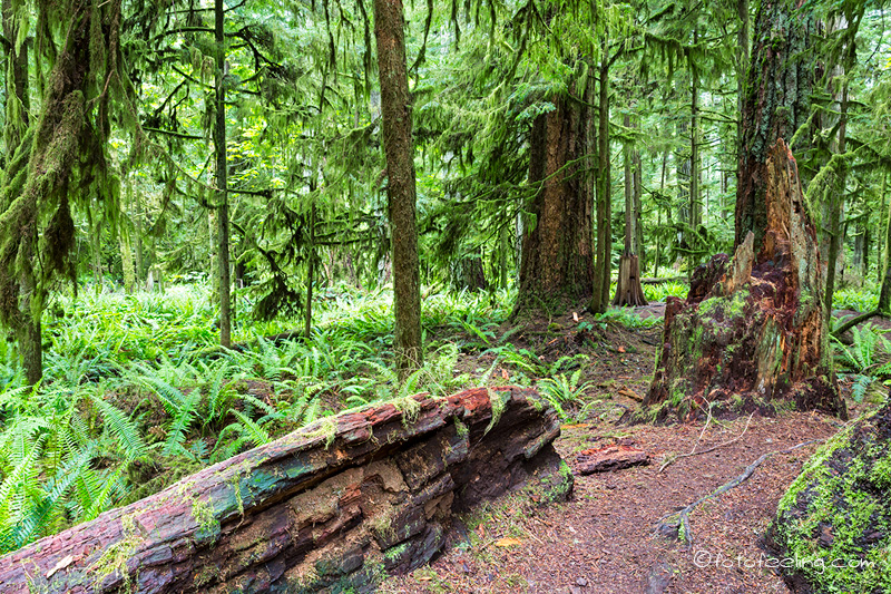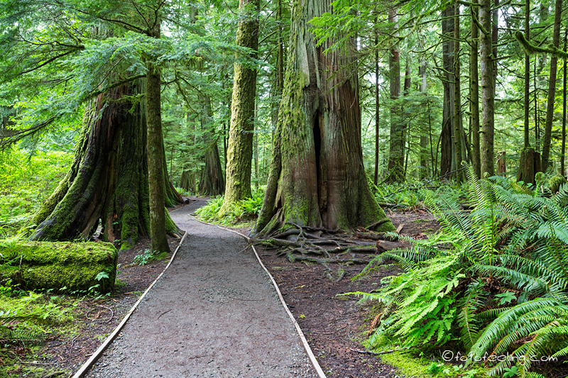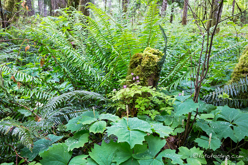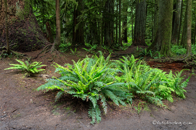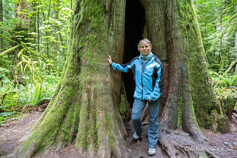 Am MacMillan Provincial Park auch bekannt als Cathedral Grove gingen wir zwei kurze Trails. Es war unglaublich - erst stand man noch auf dem Parkplatz und schon war man mitten in einem Märchenwald aus riesigen 800 Jahre alten Douglasien mit bis zu 9 Metern Durchmesser. Umgefallene Baumstämme lagen kreuz und quer. Farne wuchsen hüfthoch und Flechten zierten die Bäume. Für kurze Zeit war man in einer vollkommen anderen Welt. Fast schon andächtig und voller Staunen wanderten wir auf den für uns viel zu kurzen Wegen.