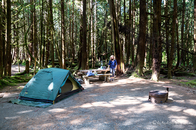 Übernachtung: Ralph River Campground, Site 32 mit Seezugang, Strathcona Provincial Park, 16 CAD