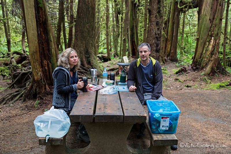 Immer wieder regnete es, aber es war zum Glück nicht so kalt. In Nanaimo kauften wir im Walmart ein paar Lebensmittel und eine Schüssel für den Abwasch ein. Die hatte uns bisher nämlich noch gefehlt. Selbstverständlich mussten noch zwei einsame Starbucks Kaffee mit, die konnten wir einfach nicht zurücklassen und schon ging es weiter den Highway 4 in Richtung Pacific Rim Nationalpark.