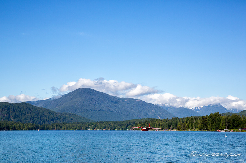 Am Sproat Lake machten wir Mittagspause. Der See war sehr schön mit den Bergen ringsherum. Mitten auf dem See war ein knallrotes Löschflugzeug. Doch das Mittagessen schmeckte hier nicht ganz so gut, denn unzählige Mücken umschwirrten uns. Zum Glück hatten sie keine rechte Lust zum Stechen und so waren sie nur lästig.