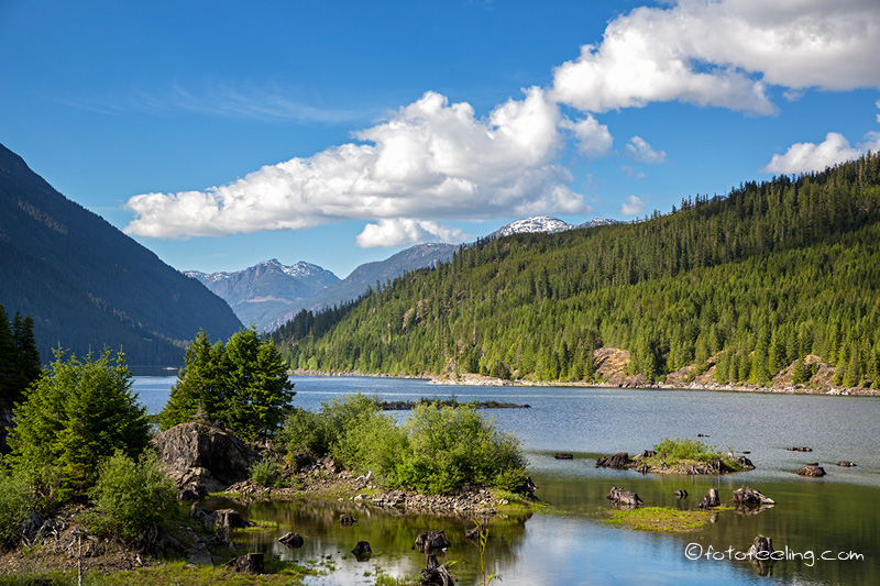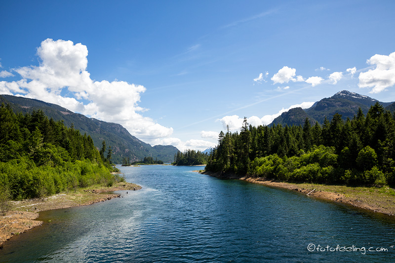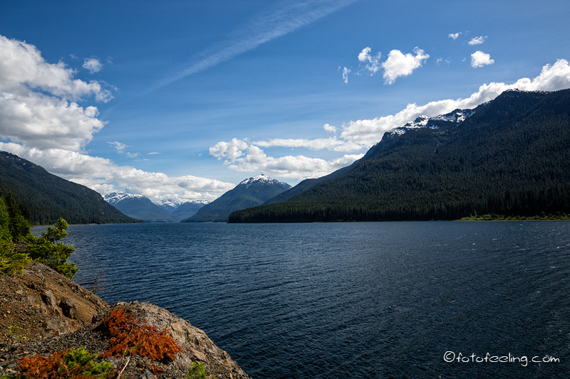 Wir fuhren weiter bis zum Strathcona Provincial Park, dem ältesten Provincial Park, der 1911 gegründet wurde. Hier gibt es zwei Campingplätze und auf dem Ralph River Campingplatz wollten wir die Nacht verbringen. Doch vorerst machten wir uns mit dem Buttle Lake und dem Park vertraut. Es gibt hier einige kleine Trails zu Wasserfällen oder Flüssen.