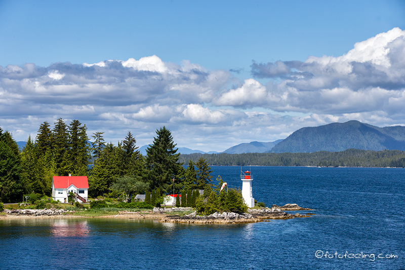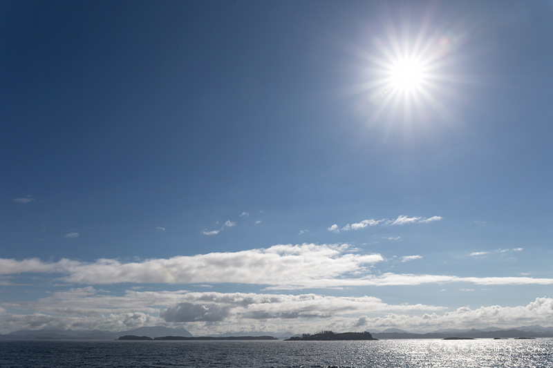 Das Schiff legte ab und auch die Sonne kämpfte sich so langsam über die Berge und durch die Wolken. Anfangs hatten wir noch einen Mix aus Sonne und Wolken, doch schon bald setzte sich die Sonne durch und verzauberte die Umgebung. Nach einem kurzen Frühstück erkundete auch ich das Schiff. Wir beschlossen uns draußen hinzusetzten, denn im Laufe des Vormittags wurde es richtig warm. Am Heck war es am schönsten, denn es war windgeschützt, man hatte viel Platz und konnte die Landschaft auf der Back- und Steuerbord- Seite schnell erkunden. Die Passage war einfach klasse. Das Schiff zog an bewaldeten Inseln vorbei. Immer wieder gab es Einblicke in schöne Fjorde. Leuchttürme standen am Ufer und leuchteten regelrecht in der Sonne.